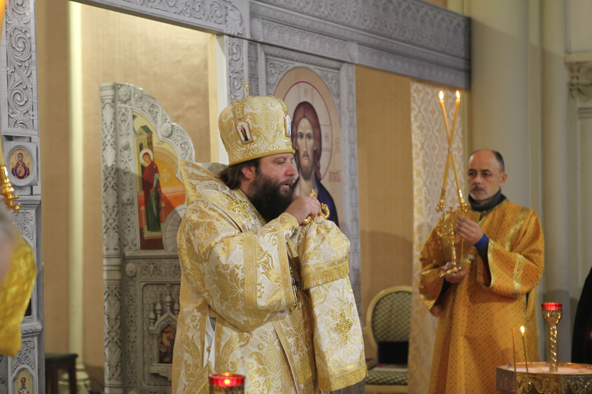 20 ноября на юбилейные празднования каннского прихода Русской Зарубежной Церкви прибыл Преосвященный Николай, епископ Манхэттенский, викарий Первоиерарха. По приезду в Канны в приходском муниципальном храме владыка Николай совершил всенощное бдение, на котором помимо духовенства прихода ему сослужили протоиерей Петр Холодный и иерей Евгений Никитин из Радосте-Скорбященской церкви г. Ментона. В день престольного праздника 21 ноября на архиерейскую Литургию прибыли иерей Гонтран Пусу из французского прихода г. Грасс и протодиакон Иоанн Буздуган из ниццкого собора. Несмотря на рабочий день, в храме было множество молящихся.