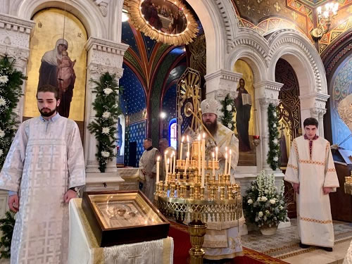 В воскресенье, 12 января, в Неделю по Рождестве Христовом, епископ Лондонский и Западно-Европейский Ириней посетил Крестовоздвиженский собор Женевы. Его Преосвященство возглавил Всенощное Бдение и Божественную Литургию, которую совершил в сослужении клириков кафедрального храма. За вечерним богослужением молился викарный епископ Вевейский Александр. В субботу после богослужения состоялся Епархиальный Совет, где обсуждались животрепещущие вопросы из жизни приходов Западной Европы. В этот день Его Преосвященство также имел ряд отдельных встреч с клириками, окормляющими верующих в Швейцарии.