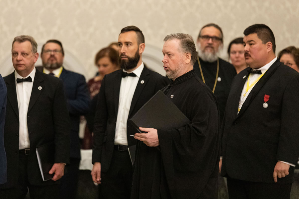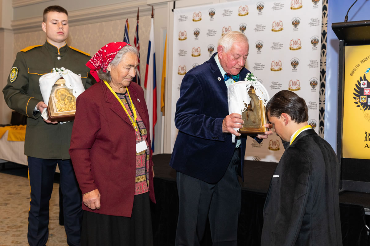 В завершение добавим, что на торжественном собрании была представлена выставка исторических фотографий Царя-Страстотерпца Николая II и Царской семьи «Романовы - царское служение», отражающая эпоху правления и личный подвиг последнего Российского Императора, имя которого свято хранилось в русском церковном зарубежье. Русская Зарубежная Церковь прославила членов семьи Императора Николая II в лике святых в 1981 году.