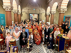 По окончании богослужения настоятель прихода в свою очередь поздравил епископа Иринея по случаю его Дня Ангела, подчеркнув особое благословение, чтобы собраться всем вместе для молитвы в этот день в столь значительном месте. Владыке и его пастве было провозглашено многолетствие. Силами прихода была приготовлена праздничная трапеза, на которой Его Преосвященство смог несколько часов пообщаться с верующими.