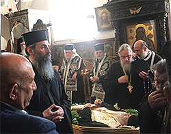 В субботу, 9 октября, Блаженнейший Патриарх Иерусалимский Феофил III с сонмом епископов и духовенства совершил чин архиерейского отпевания в храме Святых равноапостольных Константина и Елены в Патриархии. Среди молящихся присутствовали Начальник Русской Духовной Миссии (в составе Русской Зарубежной Церкви) архимандрит Роман (Красовский) с настоятельницей Русской Гефсиманской обители равноапостольной Марии Магдалины игуменией Елизаветой (Шмельц) и сестрами обители.