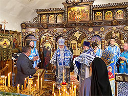 В четверг, 14 октября, в день великого праздника Покрова Божией Матери, казначей прихода Владимир Иванович Михайличенко хлебом-солью и приветственным словом встретил архиепископа Гавриила, после чего архиерей вошел в храм и возглавил праздничную Литургию. Его Высокопреосвященству сослужили:
