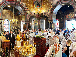 В десятое воскресенье после праздника Пятидесятницы более шестидесяти украинских беженцев из Центра для беженцев в Ньоне, Швейцария (примерно в сорока километрах от Женевы), были встречены в Крестовоздвиженском соборе для участия в Божественной литургии. Они присоединились к многочисленным членам соборного прихода украинского происхождения, а также многочисленным беженцам, которые уже являются частью общины, в принятии Божественных Таин и вознесении молитв о прекращении кровопролития на Украине.