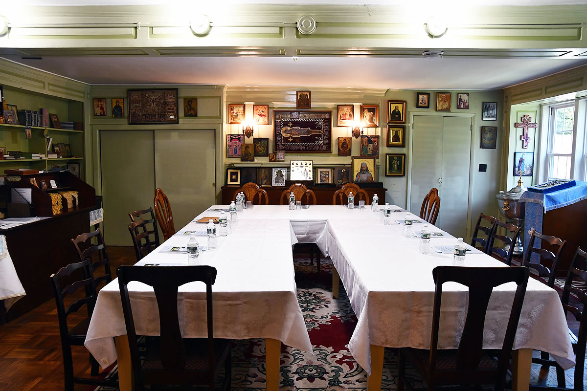 В четверг, 15 сентября, работа третьего дня Архиерейского Собора проходила в Ново-Коренной Пустыни (Магопак, Нью-Йорк), где были тепло приняты пребывающим здесь на покое Преосвященным епископом Иеронимом (Шо) и настоятелем подворья священником Георгием Темидисом. Приложившись к святыням, архипастыри продолжили свою работу в большом притворе храма. После утреннего заседания архипастыри подкрепили свои силы за трапезой, великолепно приготовленной местным сестричеством. Затем участники Архиерейского Собора и их спутники осмотрели здания подворья и посетили кладбище, где погребен архиепископ Серафим (Иванов), скончавшийся 35 лет тому назад. Во второй половине дня архипастыри обсудили вопросы, связанные с жизнью и деятельностью различных синодальных учреждений и приходов, имеющих статус непосредственного подчинения Председателю Архиерейского Синода.