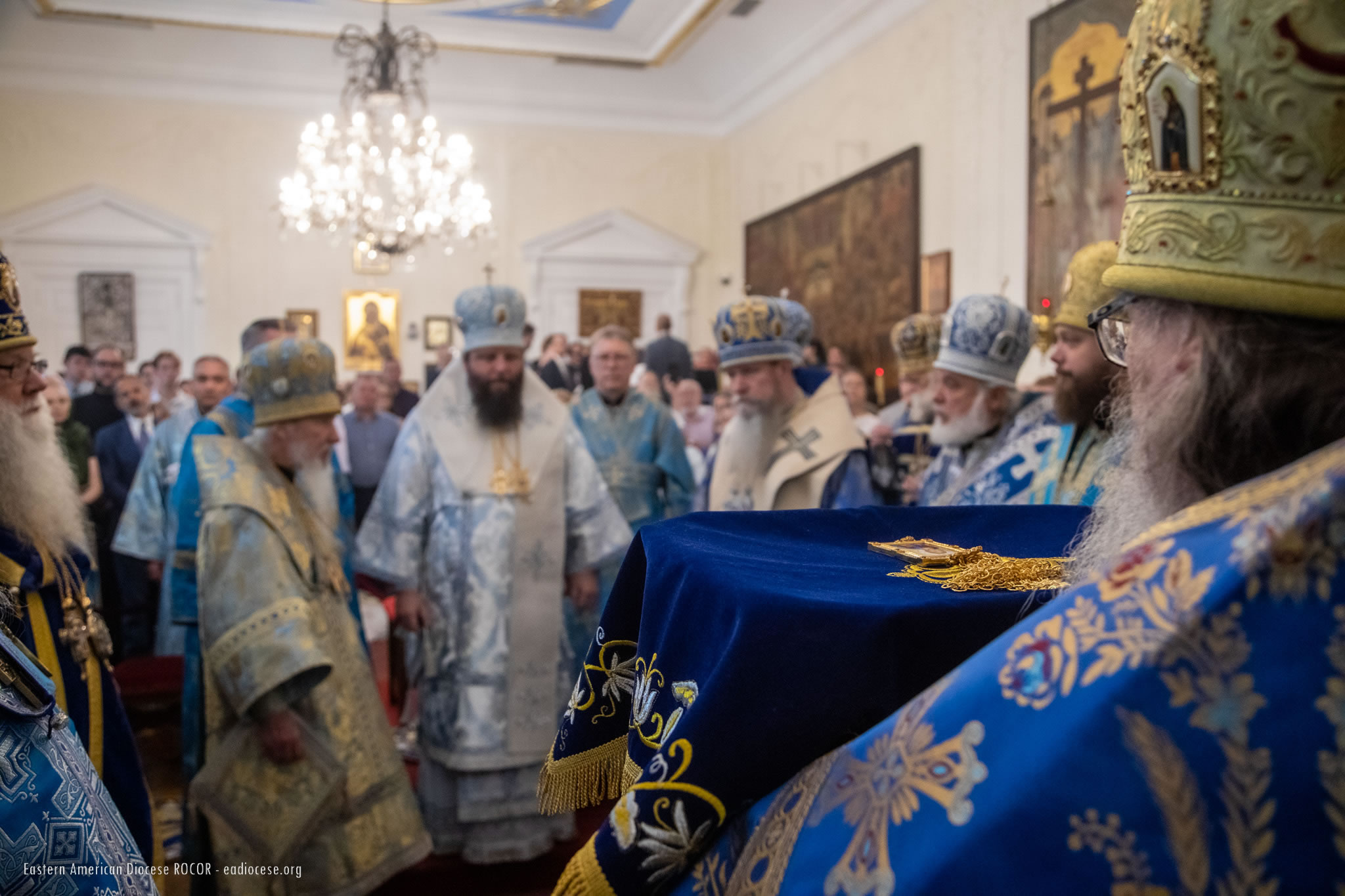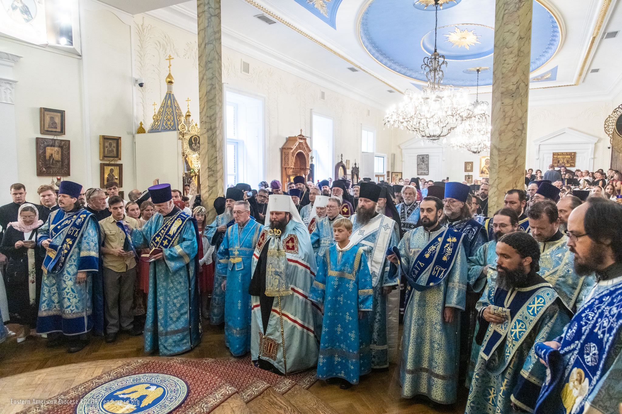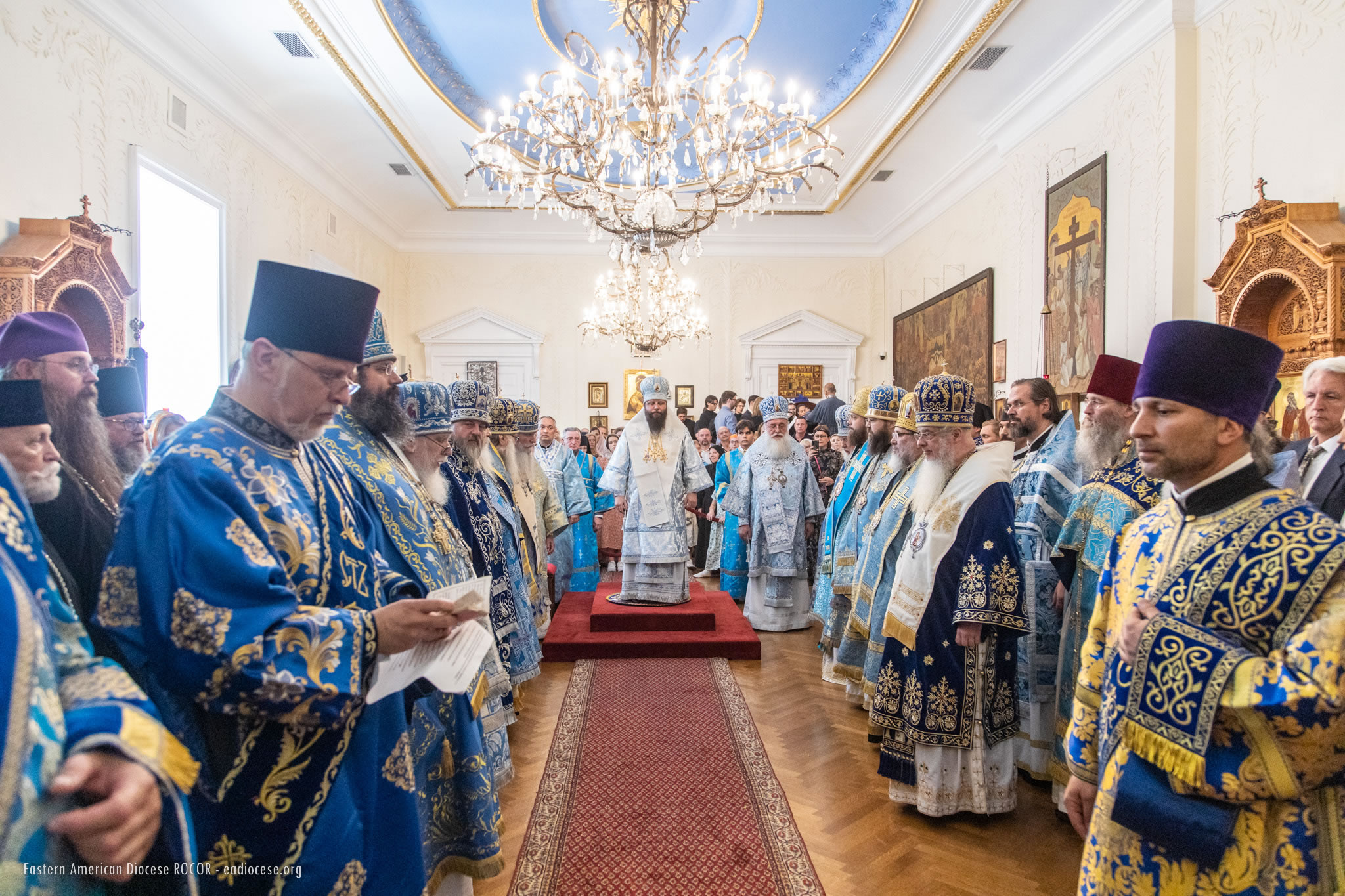 В служении Божественной литургии, помимо Преосвященных членов Архиерейского Собора, приняли участие епископ Новограчаницкий и Средне-Западно-Американский Лонгин (Сербская Православная Церковь) и архиепископ Арцизский Виктор, викарий Одесской епархии Украинской Православной Церкви. Среди сослужащего духовенства были представители Поместных Православных Церквей, гости из различных епархий Русской Зарубежной Церкви и многолюдный сонм клира Восточно-Американской епархии. В конце Божественной литургии был совершен молебен Божией Матери перед Ее Коренно-Курской иконой "Знамение".