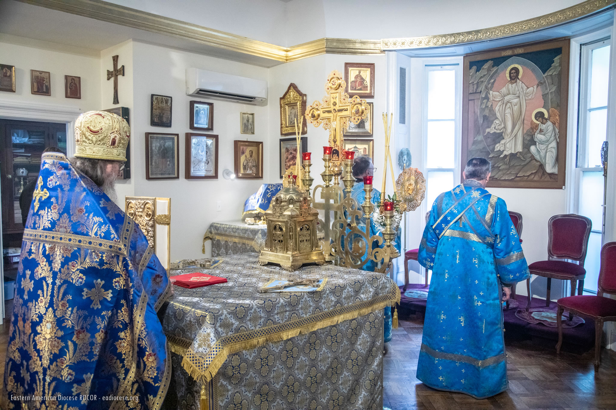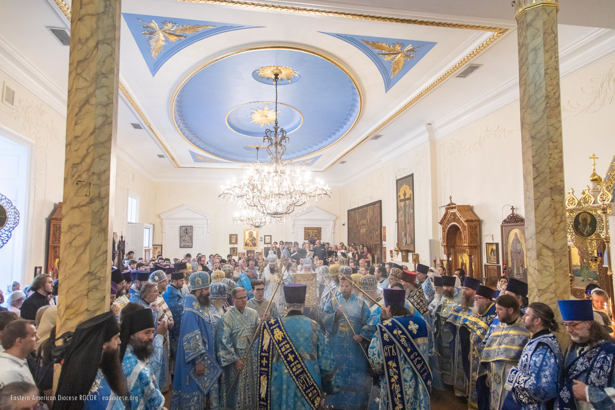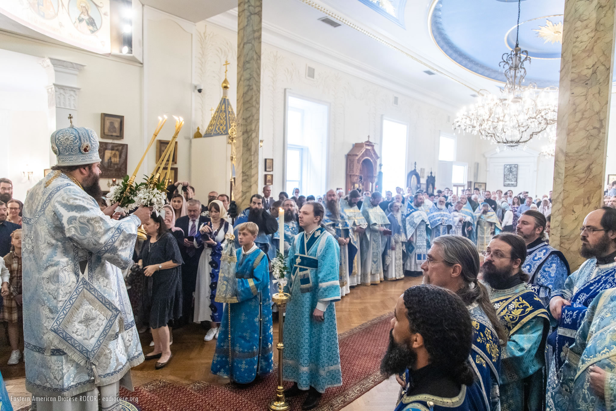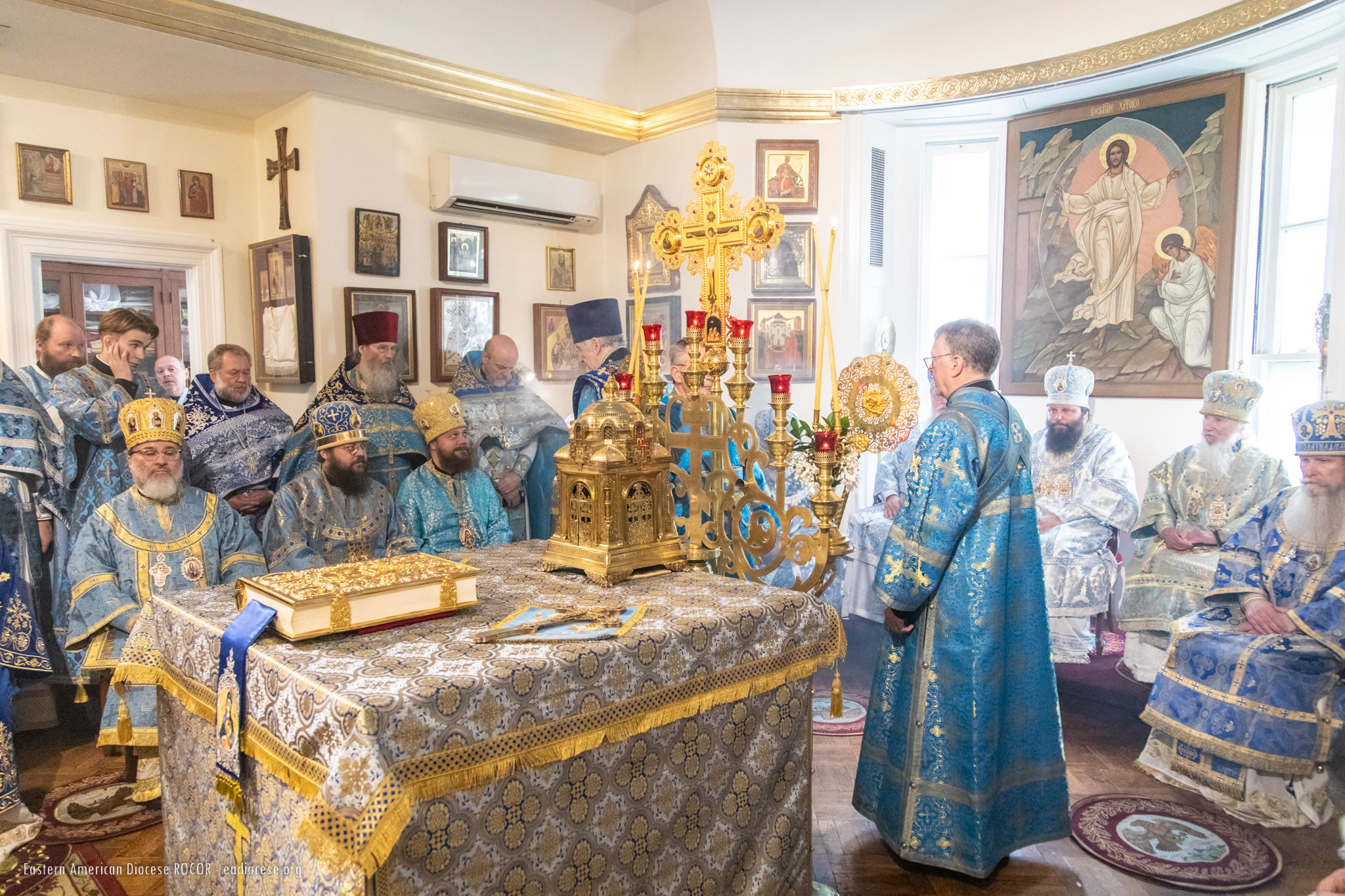 В служении Божественной литургии, помимо Преосвященных членов Архиерейского Собора, приняли участие епископ Новограчаницкий и Средне-Западно-Американский Лонгин (Сербская Православная Церковь) и архиепископ Арцизский Виктор, викарий Одесской епархии Украинской Православной Церкви. Среди сослужащего духовенства были представители Поместных Православных Церквей, гости из различных епархий Русской Зарубежной Церкви и многолюдный сонм клира Восточно-Американской епархии. В конце Божественной литургии был совершен молебен Божией Матери перед Ее Коренно-Курской иконой "Знамение".