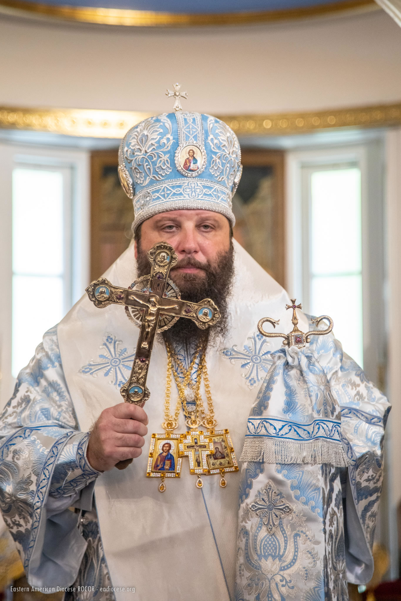 «Всемогущая и Животворящая Святая Троица, Неодержимая Держава и нераздельное Царство, подает тебе сей великий престол архиерейства, митрополию и Первосвятительство Русския Зарубежныя Церкве, избранием братии твоея, русских зарубежных архиереев и утверждением Святейшаго Патриарха и Священнаго Синода. И ныне, господине и брате, восприими жезл пастырства, и взыди на престол старейшинства святительскаго, во имя Господа нашего Иисуса Христа, и моли Пречистую Его Матерь о всем православном христианстве и о врученных тебе чад Церкви нашей, в рассеянии сущей, и упаси их яко добр пастырь, и да подаст ти Господь Бог здравие и долгоденствие и многая лета».