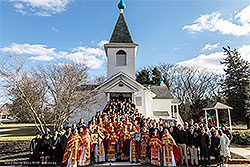 На ступенях церкви была снята общая фотография, после чего все снова собрались в церковном зале на трапезу.