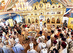 В воскресенье Божественную литургию совершили архиепископ Монреальский и Канадский Гавриил, епископ Австралийско-Новозеландский Георгий и епископ Сиракузский Лука, настоятель Свято-Троицкого монастыря в Джорданвилле (США). Следует отметить запомнившееся всем присутствующим прекрасное звучание Русского мужского православного хора Австралийско-Новозеландской епархии под руководством Н.Котлярова, специально собравшегося на это торжество. Этот хор хорошо знают и любят в русском сообществе Австралии. Его хористы поют в различных русских храмах Сиднея, Брисбена, Канберры.