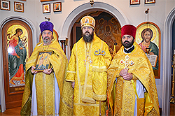 После Божественной литургии и крестного хода Владыка искренне поздравил приход, его нового и уходящего настоятеля с престольным праздником. Затем на открытом воздухе была предложена праздничная трапеза, на которой дети исполнили небольшую программу, а священнослужители и верующие со своим архипастырем обсуждали животрепещущие вопросы духовной жизни.