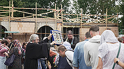 На месте строящегося храма был совершен молебен перед чудотворным образом. Отцу Аркадию сослужили священнослужители Германской епархии. На богослужении икона пребывала в храме, где верующие имели возможность приложиться к ней.