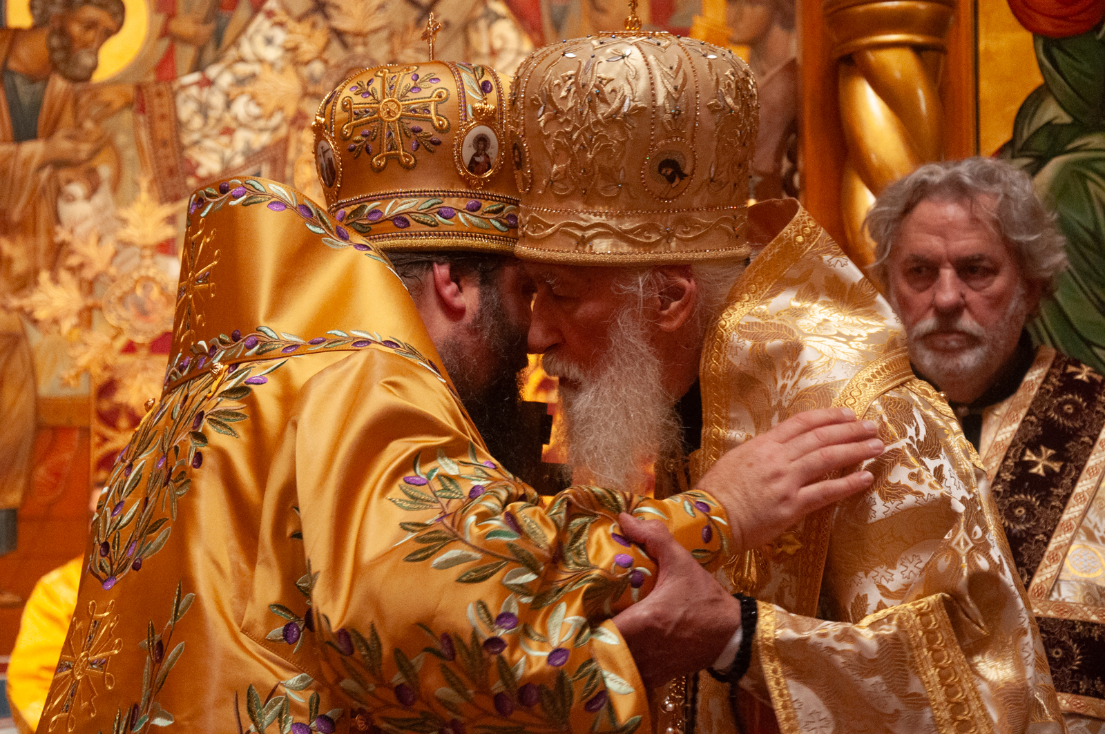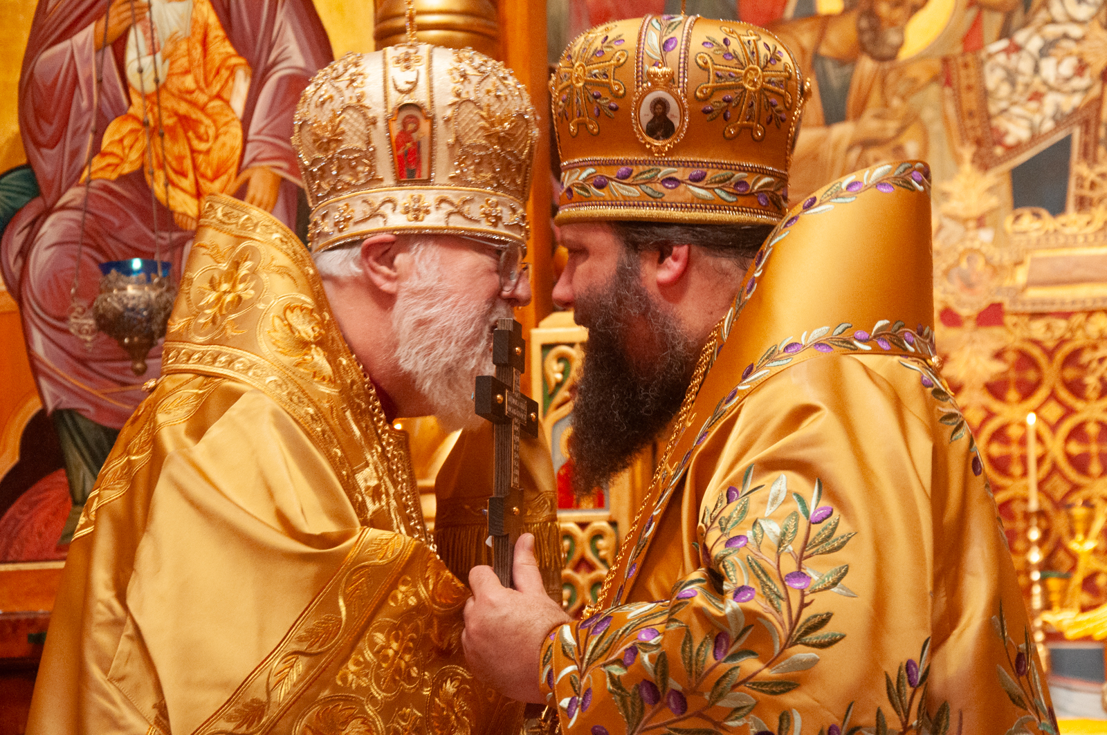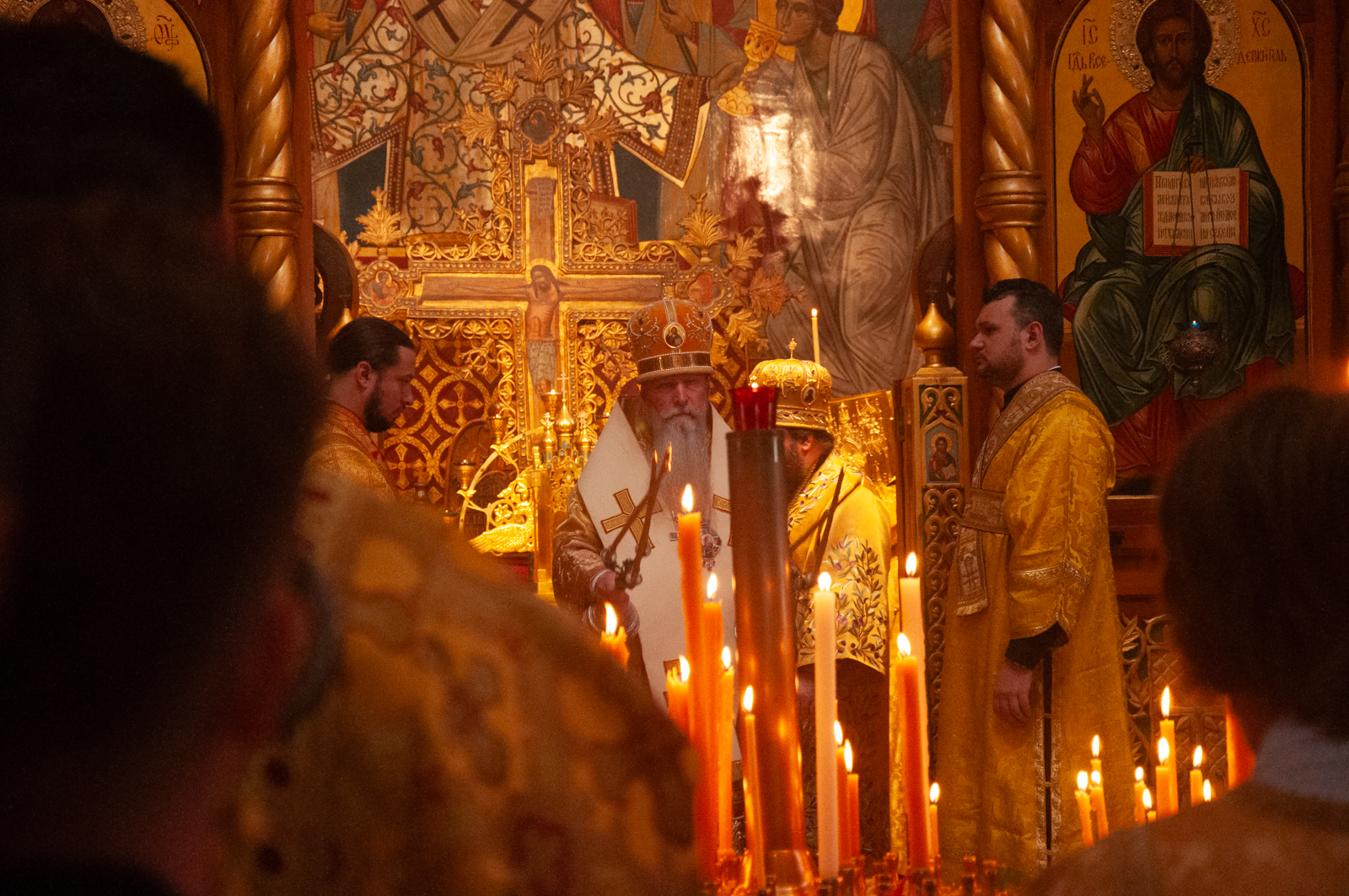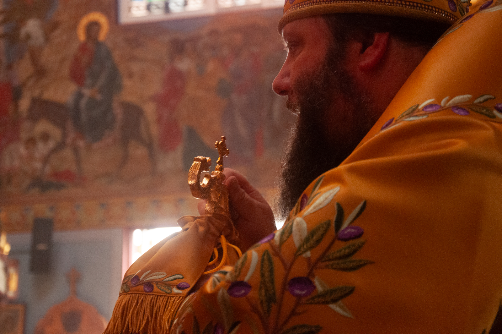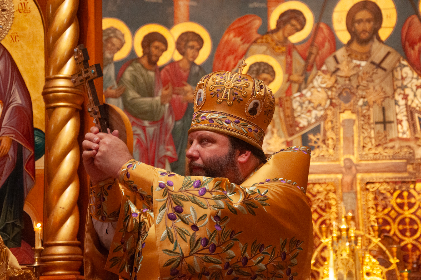 На малом входе Божественной литургии Первоиерарх Русской Зарубежной Церкви возложил золотой наперсный крест, Архиерейским Синодом выдаваемый, на иеромонаха Петра (Каракозова), клирика Западно-Американской епархии.