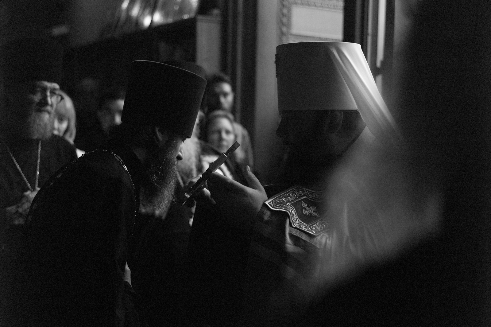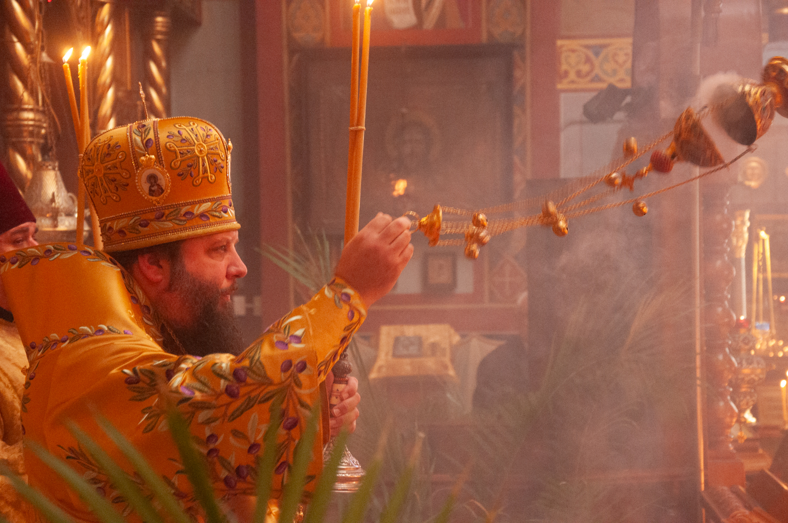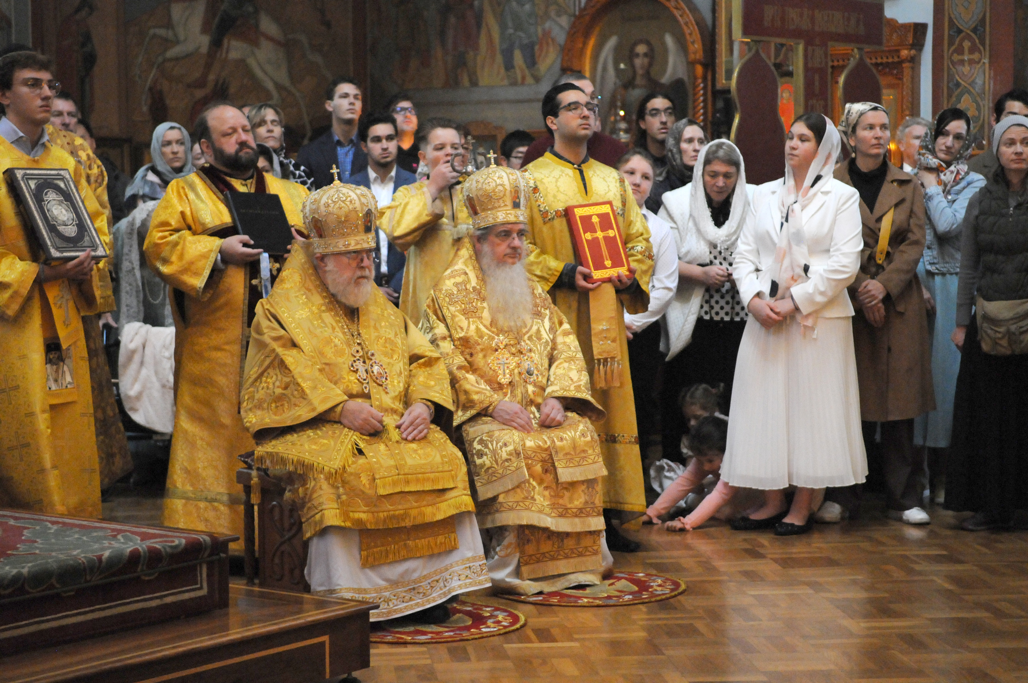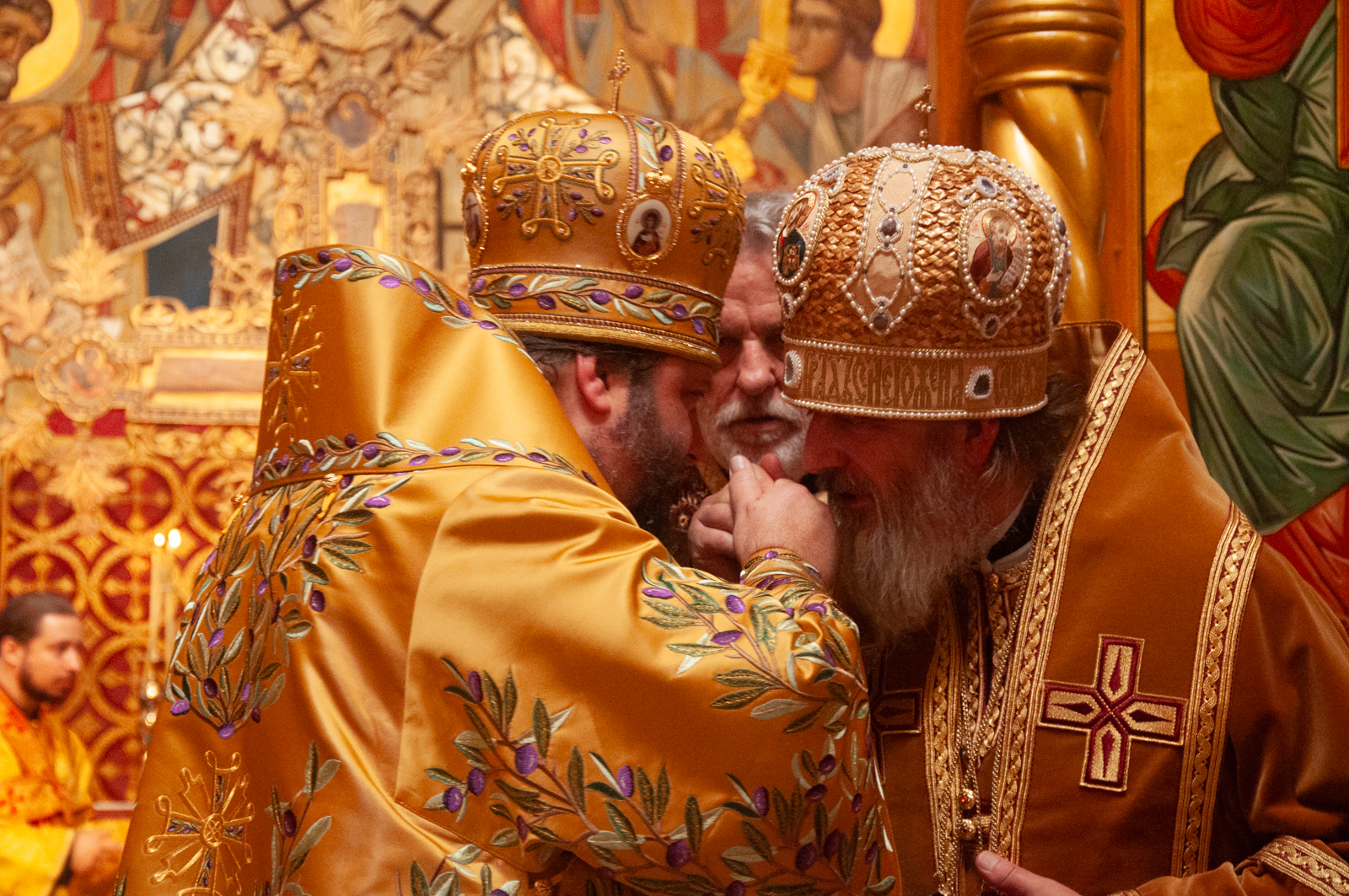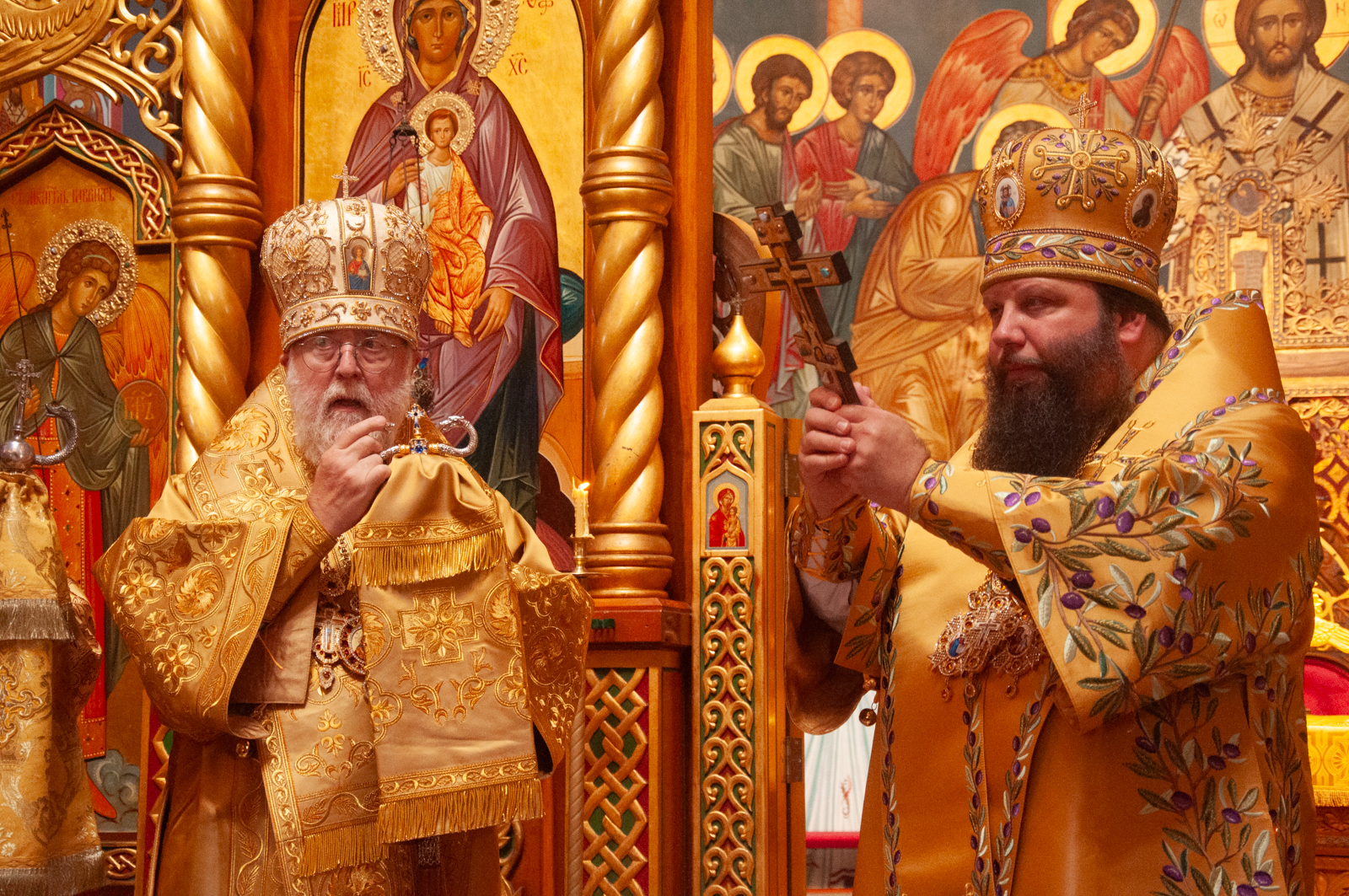 На малом входе Божественной литургии Первоиерарх Русской Зарубежной Церкви возложил золотой наперсный крест, Архиерейским Синодом выдаваемый, на иеромонаха Петра (Каракозова), клирика Западно-Американской епархии.