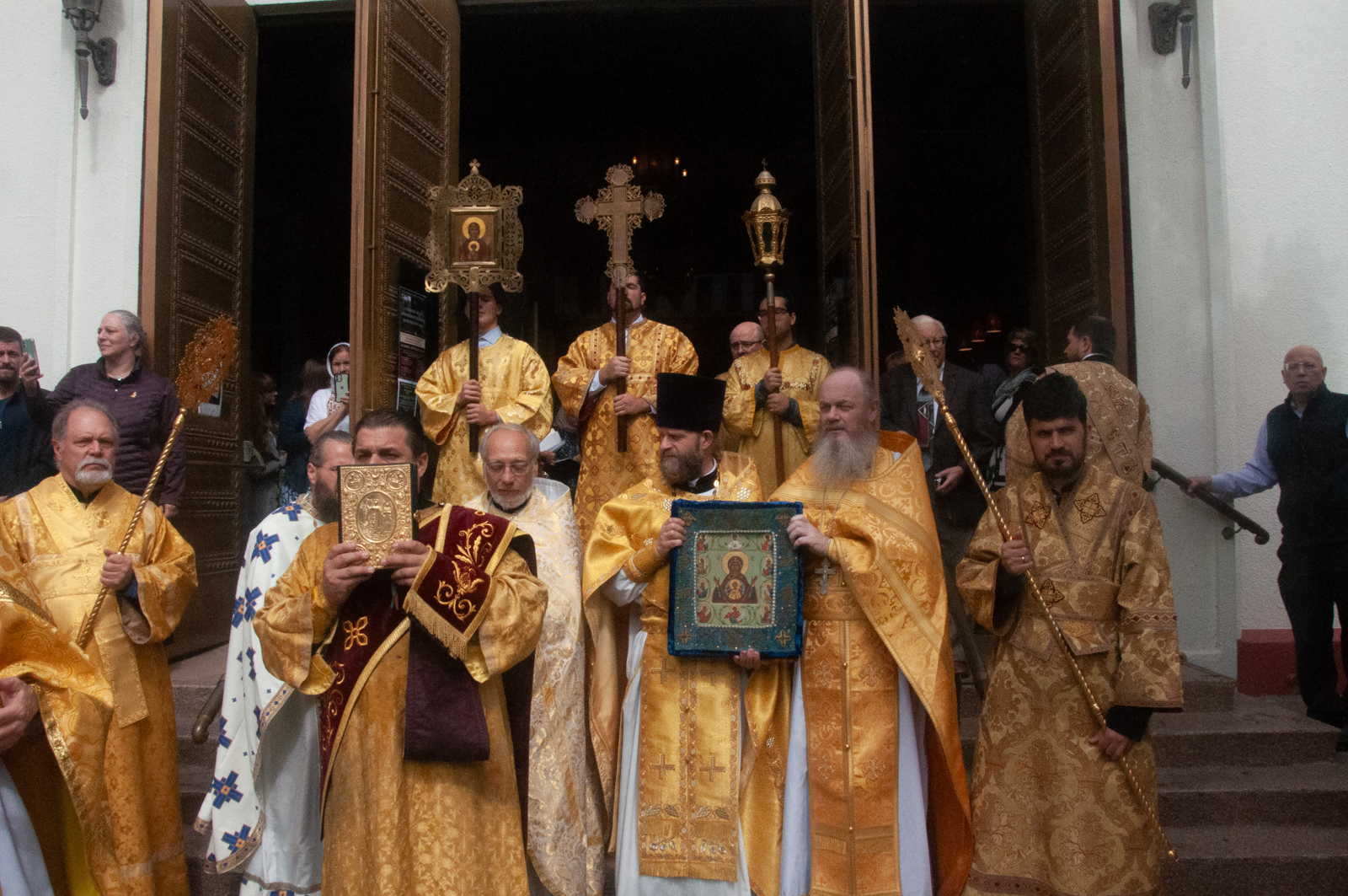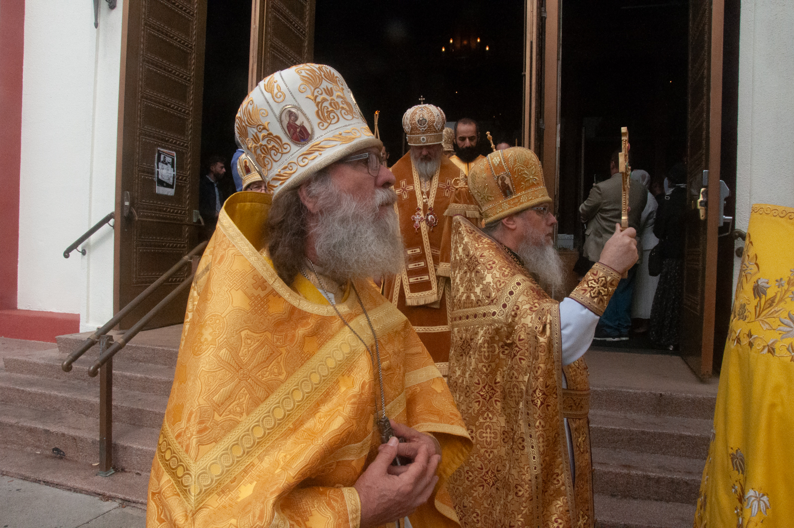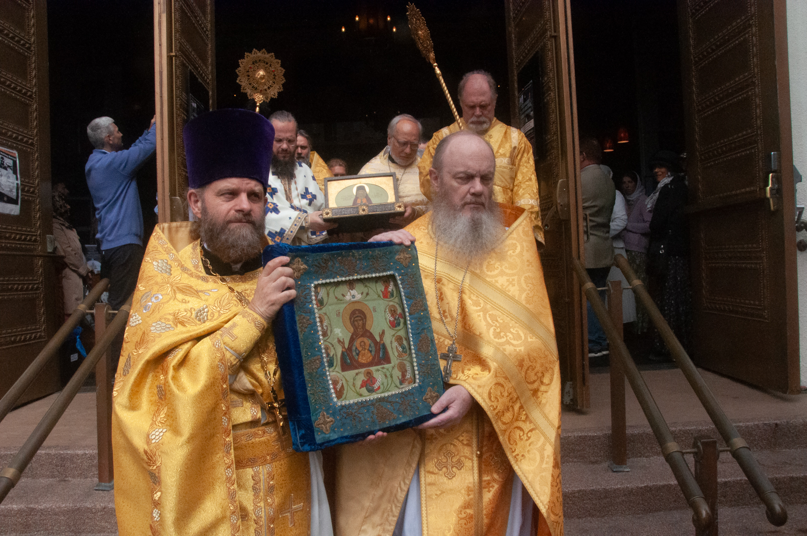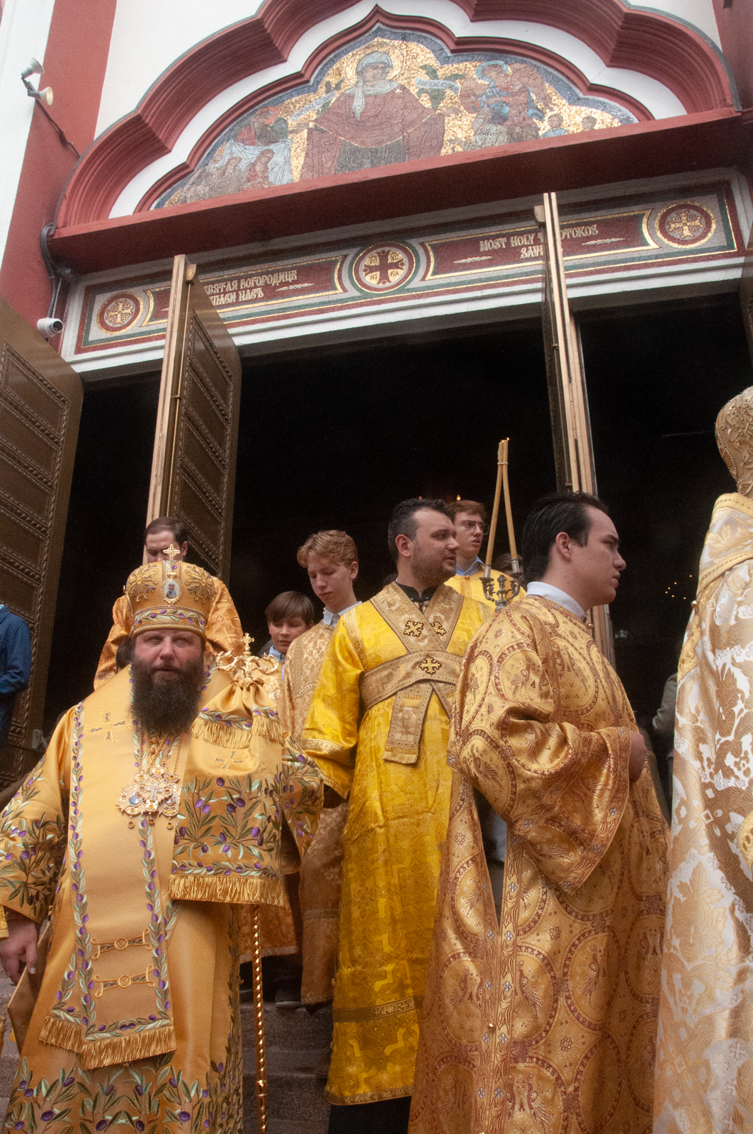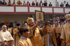 По окончании Божественной литургии было совершено молебное пение с крестным ходом вокруг соборного комплекса, после чего Высокопреосвященнейший митрополит Николай обратился к собравшимся богомольцам с Первосвятительским словом.