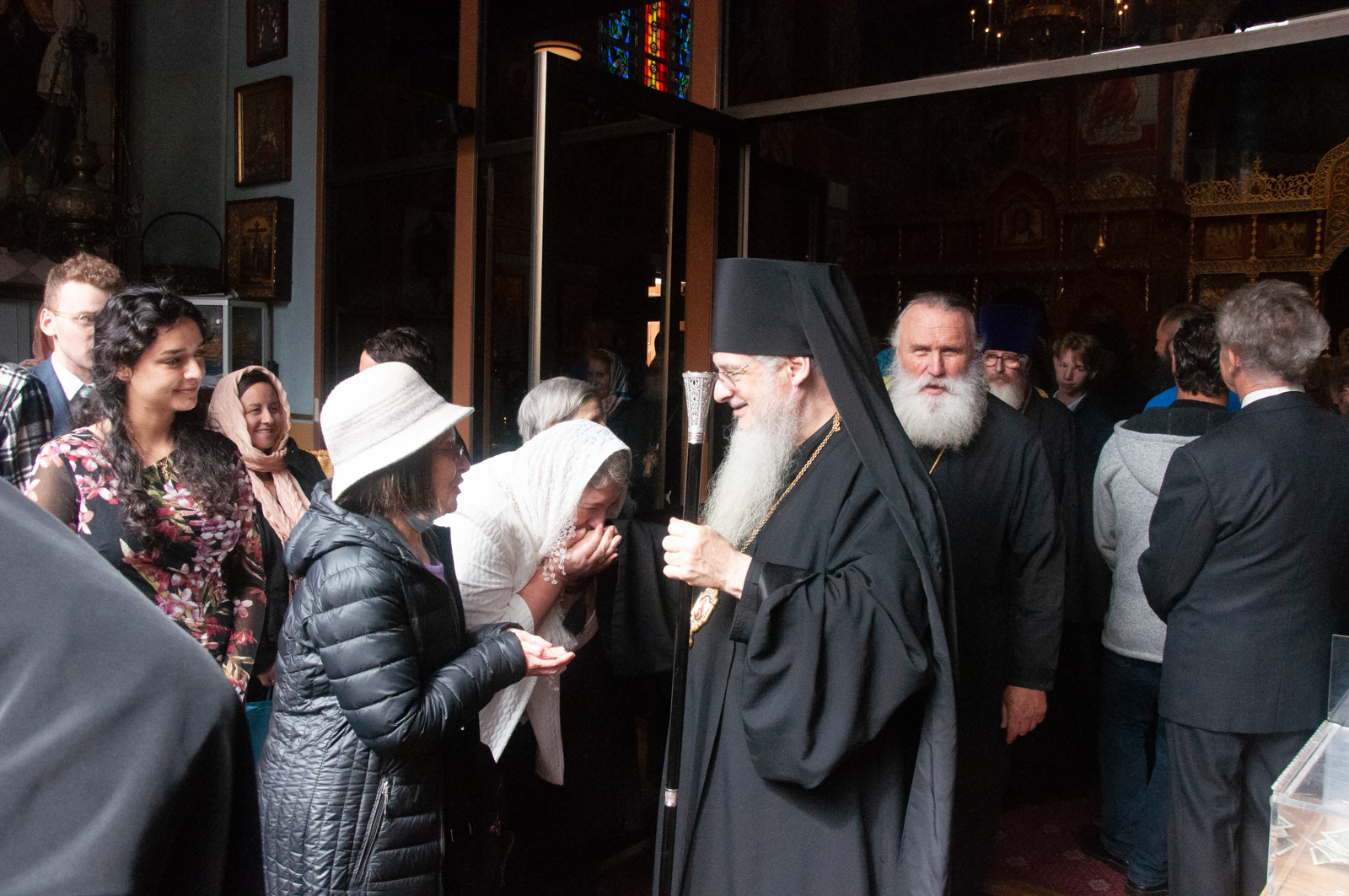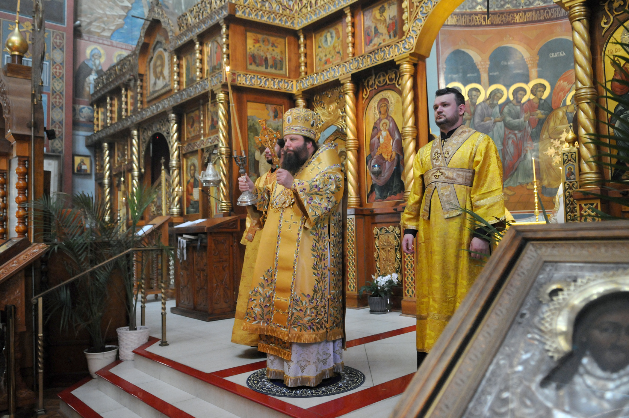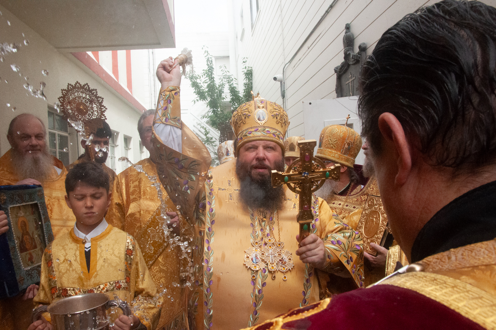 По окончании Божественной литургии было совершено молебное пение с крестным ходом вокруг соборного комплекса, после чего Высокопреосвященнейший митрополит Николай обратился к собравшимся богомольцам с Первосвятительским словом.