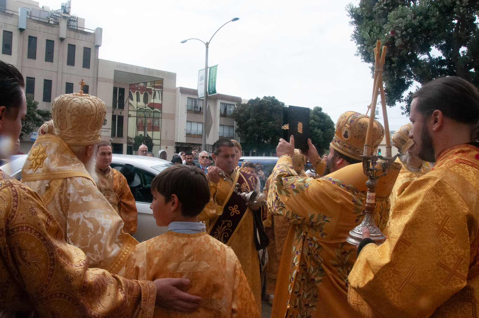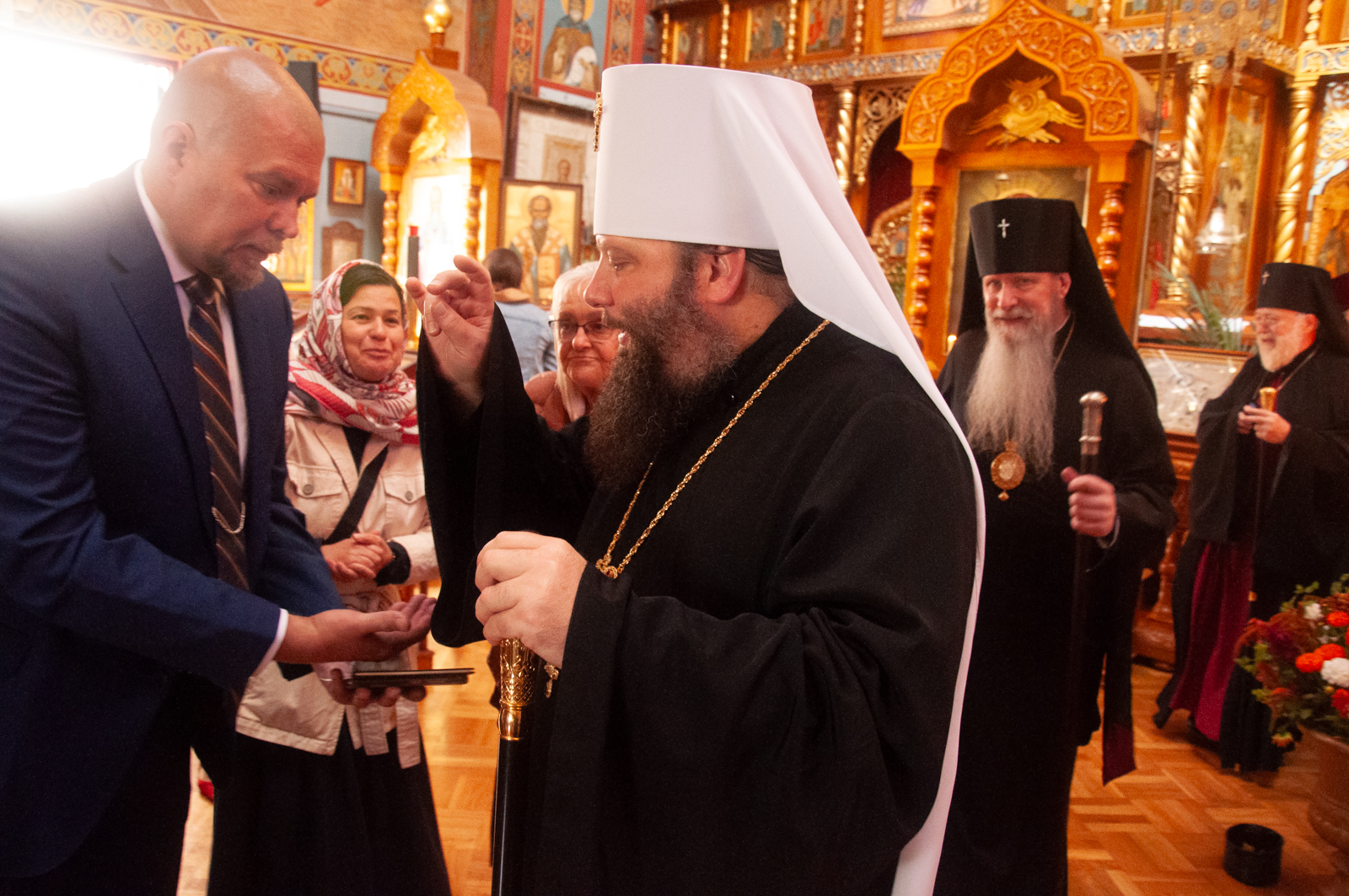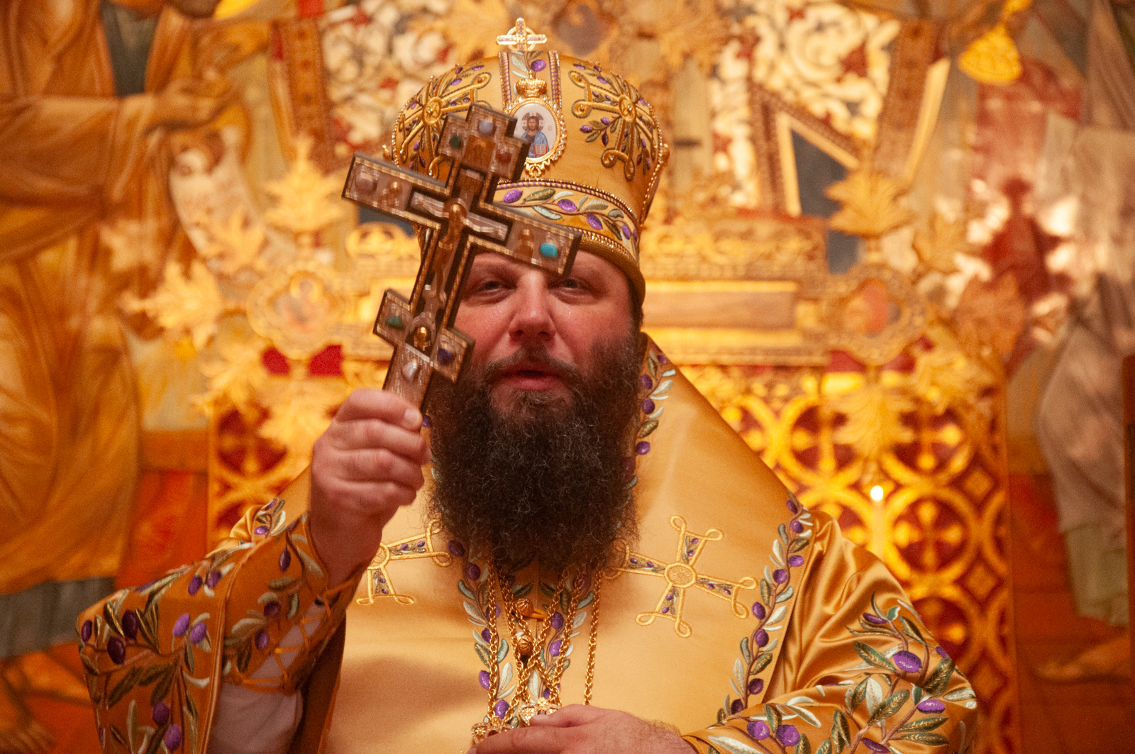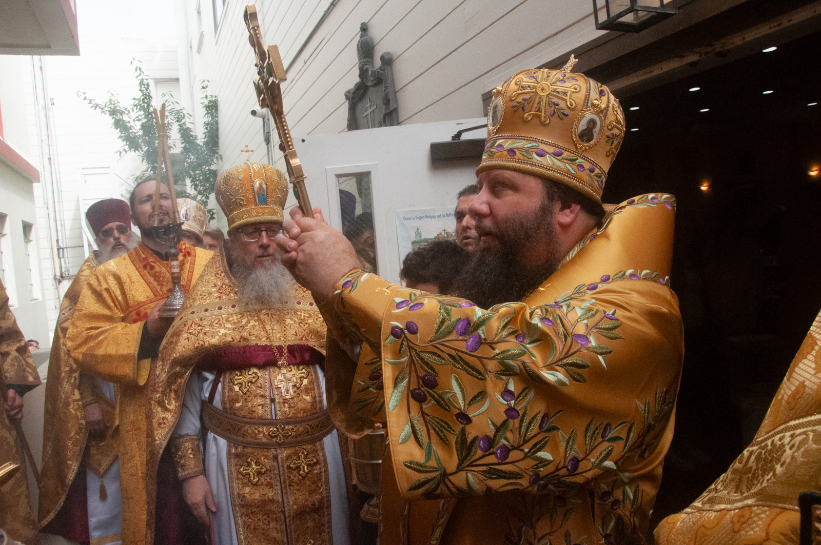 По окончании Божественной литургии было совершено молебное пение с крестным ходом вокруг соборного комплекса, после чего Высокопреосвященнейший митрополит Николай обратился к собравшимся богомольцам с Первосвятительским словом.