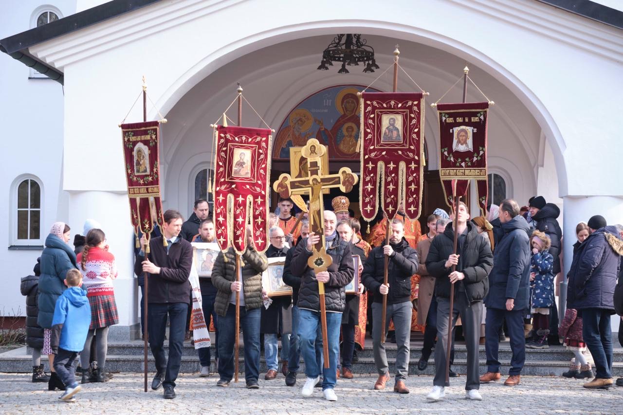 По окончании Божественной литургии был совершен молебен с крестным ходом вокруг соборного храма и чтением молитвы святым, составленной приснопамятным архиепископом Антонием (Медведевым), автором службы святым новомученикам и исповедникам, принятой Архиерейским Собором 1981 года.