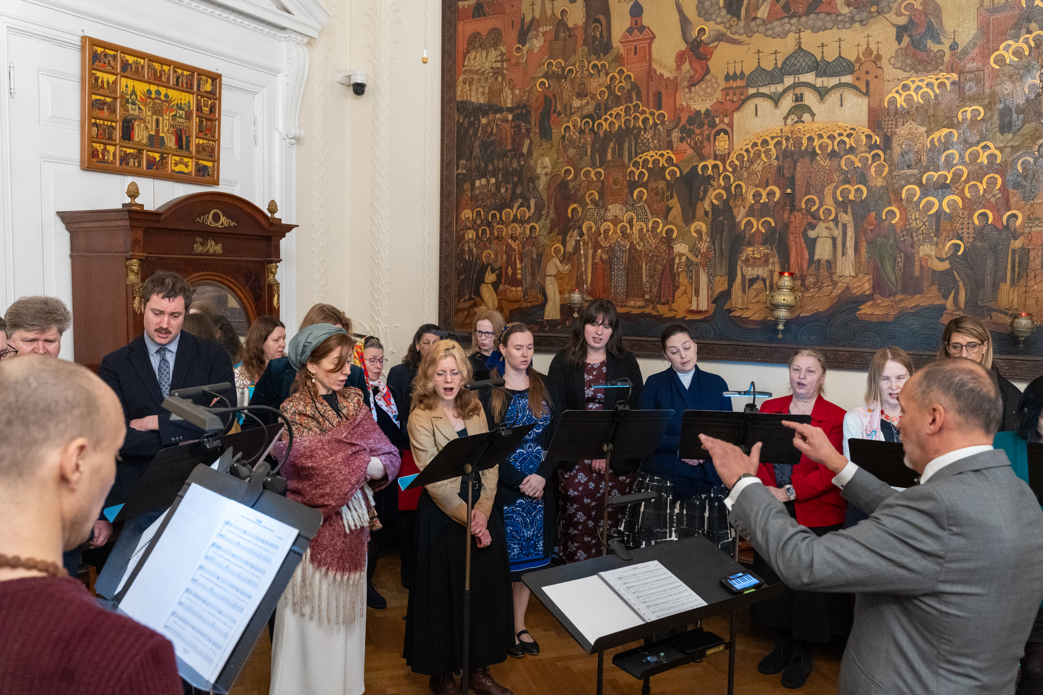 Богослужебные песнопения исполнял Синодальный хор под управлением регента В.С. Гана.