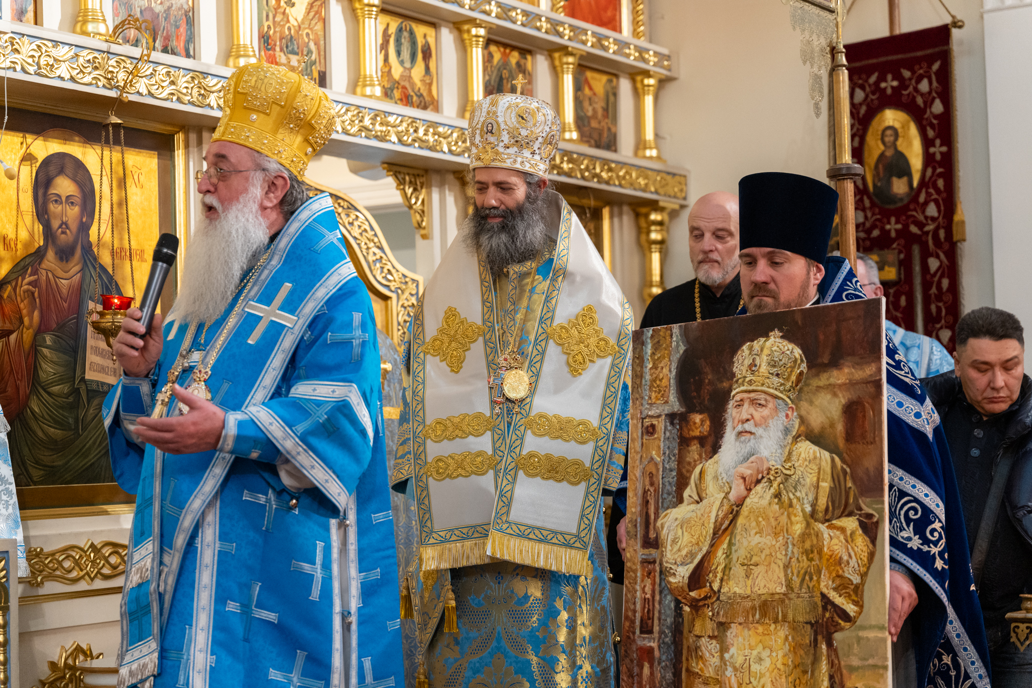 Высокопреосвященнейший митрополит Лонгин обратился к тезоименитому архипастырю с теплыми словами приветствия и преподнес ему памятный дар – портрет приснопамятного митрополита Лавра.