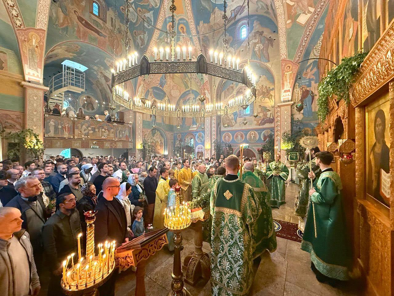 В воскресенье, 8 июня, в праздник Святой Пятидесятницы, епископ Лондонский и Западно-Европейский Ириней возглавил Божественную литургию и Великую вечерню с чтением коленопреклоненных молитв, а накануне – Всенощное бдение. Его Преосвященству сослужил соборный клир, при пении архиерейского хора и большом стечении молящихся.