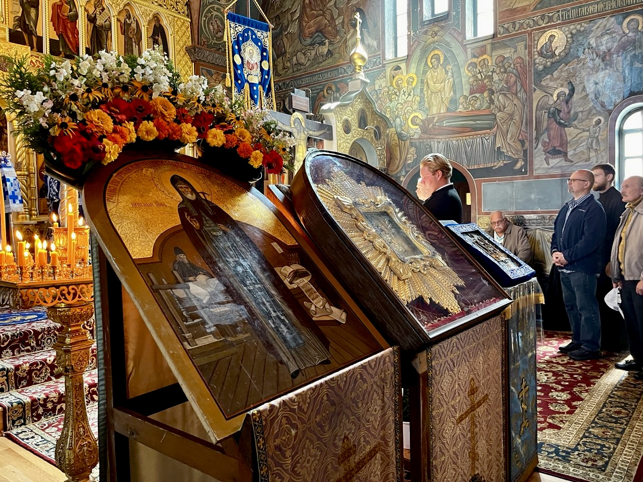 Паломничество в Свято-Троицкий монастырь в дни гражданских праздников, которыми завершается лето в США, продолжилось Божественной литургией, совершенной архиерейским чином в понедельник утром.
