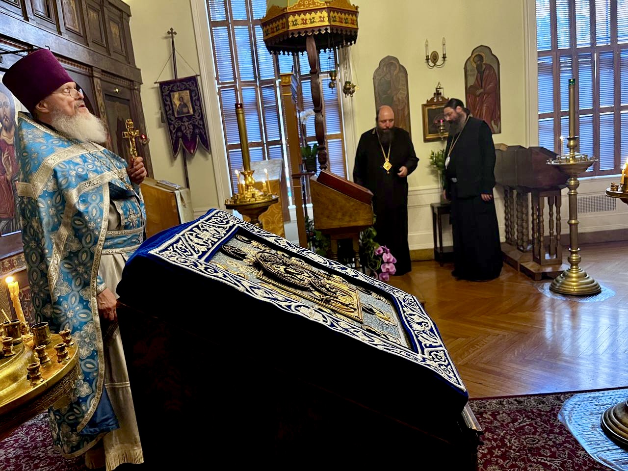 В пятницу, 29 августа, в день перенесения Нерукотворного Образа Спасителя из Едессы в Константинополь, епископ Штутгартский Иов, викарий Германской епархии, сопровождая Коренно-Курскую икону Божией Матери "Знамение", прибыл в Нью-Йорк. В Синодальной резиденции чудотворную икону Богоматери встретил Высокопреосвященнейший митрополит Восточно-Американский и Нью-Йоркский Николай, Первоиерарх Русской Зарубежной Церкви. Приложившись к Плащанице Божией Матери и другим святыням Знаменского собора и нижней Сергиево-Радонежской церкви, Преосвященный Иов проследовал в покои Первоиерарха, где состоялась братская беседа. В тот же день вечером был дан ужин в честь высокого гостя с участием обоих архипастырей, сотрудников канцелярии Архиерейского Синода и других гостей.