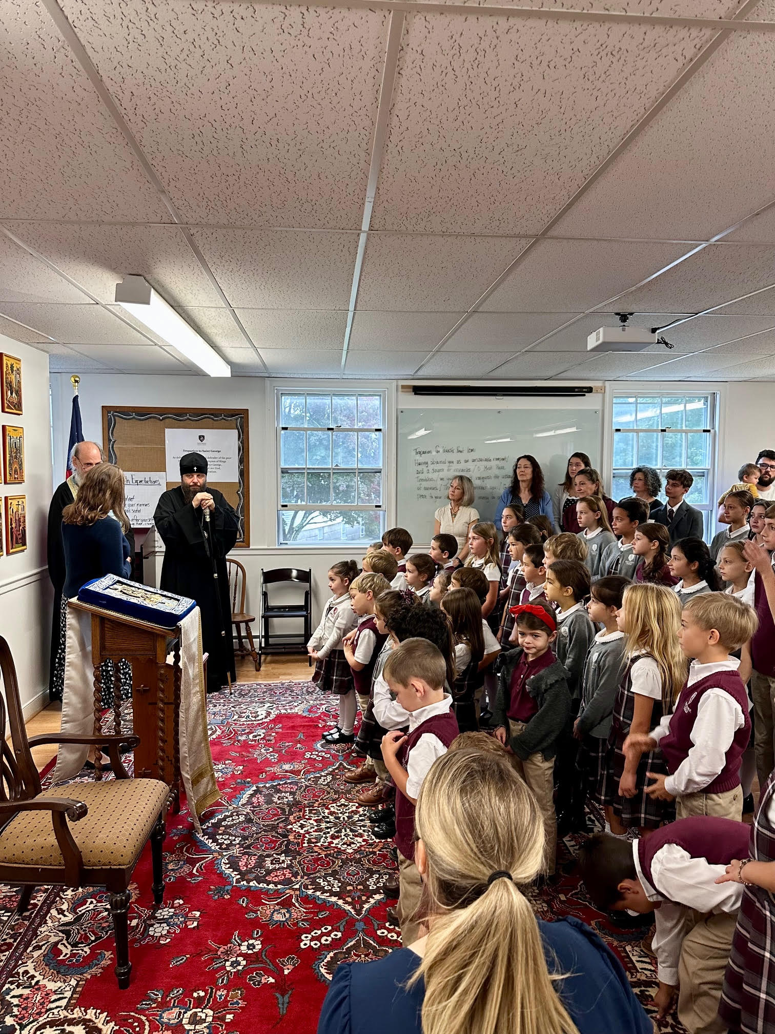В четверг, 25 сентября, в Отдание праздника Рождества Пресвятой Богородицы, Высокопреосвященнейший митрополит Николай, сопровождая Коренно-Курскую икону Божией Матери «Знамение», посетил Георгиевскую классическую академию в Ипсвиче (Массачусетс). Здесь Его Высокопреосвященство встретился с директором Юлианией Шнайдер, учащими и учащимися, обошел все помещения и ознакомился с жизнью школы. В тот же день Высокопреосвященнейший владыка Николай посетил кладбище Mt. Auburn в Кембридже (Массачусетс), где совершил заупокойную литию у могилы покойного благодетеля Архиерейского Синода и Афоно-Ильинского скита С.Я. Семененко, в конце 1950-х годов подарившего Русской Зарубежной Церкви Синодальную резиденцию в Нью-Йорке.
