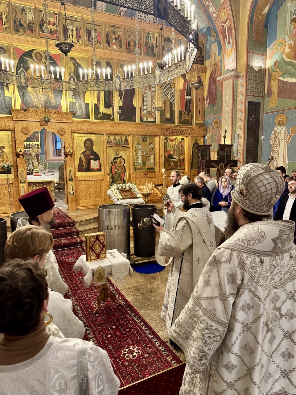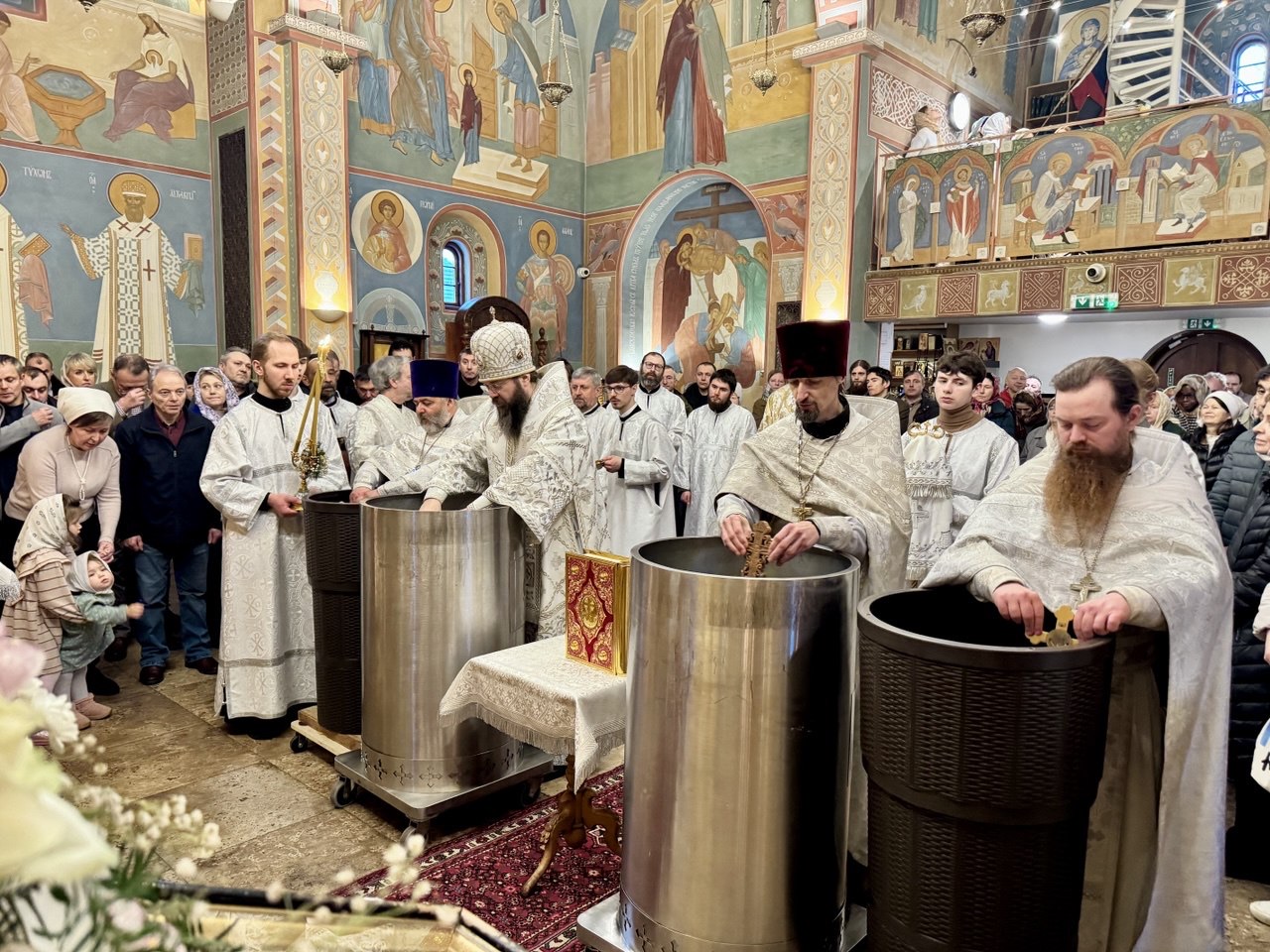 В понедельник, 19 января, в праздник Крещения Господня, епископ Лондонский и Западно-Европейский Ириней совершил Божественную литургию по чину святителя Василия Великого и Великое освящение воды в Богородице-Рождественском кафедральном соборе г. Лондона. Его Преосвященству сослужили ключарь протоиерей Виталий Серапинас и соборный клир, при большом стечении богомольцев.