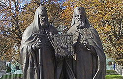 Многое. И красивый собор, и стройные монастырские службы, и ухоженность территории, и доброжелательность братии, трудников, многочисленных паломников. У меня был один любопытный момент: спускаюсь я к собору, чуть повернул голову вправо, вижу – памятник, знакомый до боли. Я знал, что в мире установлены три памятника нашим великим современникам, благодаря которым было преодолено разделение в Русской Православной Церкви, начавшееся в годы революции и Гражданской войны. Это приснопамятные Святейший Патриарх Московский и всея Руси Алексий II и митрополит Восточно-Американский и Нью-Йоркский Лавр. Знал и как-то подзабыл. А тут увидел, разволновался, обрадовался. Один памятник стоит у нас – в городе Хауэлл в штате Нью-Джерси при Александро-Невском кафедральном соборе. На его постаменте надпись, что это «дар Русскому Зарубежью от народа православной России». В Коренной обители, по сообщению его наместника отца Серафима, памятник был установлен на пару месяцев раньше – в октябре 2015 года. И третья скульптурная композиция «Воссоединение», посвященная подписанию Акта о каноническом общении Русской Православной и Русской Зарубежной Церкви, была установлена возле Храма Христа Спасителя в Москве летом прошлого года. Еще одной радостью хочу поделиться: мы с отцом Павлом Волковым, членом нашей делегации, спустились по многоступенчатой лесенке к святым источникам, окунулись и вдруг меня пронзила мысль: ведь в этих краях жил и молился Прохор Мошнин, будущий святой – преподобный Серафим Саровский! В десятилетнем возрасте он получил дивное исцеление от чудотворного образа, который мы сейчас привезли из Америки. Родители назвали меня, своего старшего сына, в честь батюшки Серафима, и в те минуты я как бы явно почувствовал его присутствие рядом. В один миг все события последних дней соединились воедино.