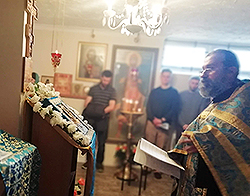 О.С.: В четверг икона была передана диакону Марку, но ее милость и благодать навсегда остались в храме. Слава Богу за все! С Божией помощью и усердием наших прихожан у нас уже есть все, что необходимо. Не так давно моя жена, несмотря на все трудности транспортировки, привезла из Украины купель для крещения, которая весит больше 90 кг. Иконы, подсвечники - вся церковная утварь привезена из Украины, Киево-Печерской Лавры. У нас есть запас 6000 свечей. Для нашего алтаря мы приобрели ткань и пошили облачения. Вот видите эти красные двойные занавески из шелковой ткани перед алтарем? Все это сделано руками наших прихожан. И все, о чем я говорю и показываю Вам, сделано только за год. У нас много надежд и планов , которые мы надеемся осуществить с Божией помощью. Дай Бог встретить в нашем храме самого владыку, другие иконы, священные мощи...