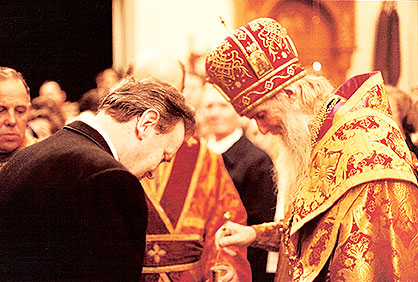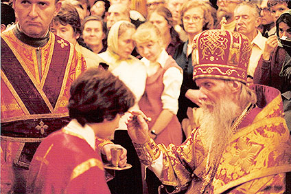 В конце Божественной литургии очень многие приступили к Святой Чаше. Причащали не только с амвона, но и с кафедры на середине храма. Литургия закончилась прекрасным словом митрополита Филарета о нынешней славе Русской Церкви, и крестным ходом.
