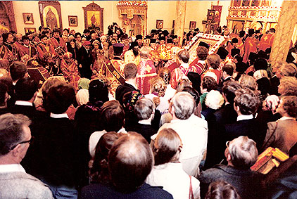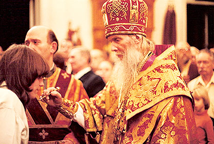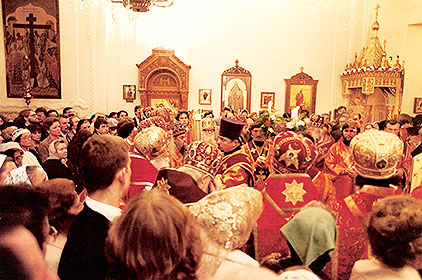 Кто никогда не бывал в Синодальном соборе Знамения Божией Матери в Нью-Йорке, где находится кафедра Первоиерарха Русской Зарубежной Церкви, тот должен представить себе огромный зал некогда очень богатого американского дома, который вот уже более двадцати лет, как стал храмом. Прекрасный трехярусный иконостас, иконы, киоты, намоленность человеческими молитвами и пребыванием там великой древней святыни Русской Церкви – чудотворной Курско-Коренной иконы Божией Матери, от которой преподобный Серафим Саровский получил свое первое исцеление, – все это давно изжило там следы зала в светском доме и дало нам кафедральный собор, вмещающий около тысячи человек.