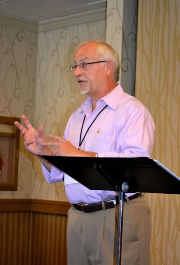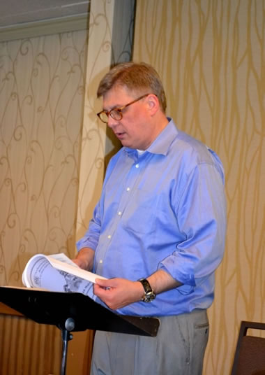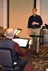 Николай Кастер, регент Серафимовского прихода в Санта Роза (ПЦА) прочел очень интересный доклад на тему о создании аранжировок Русской духовной музыки на английском языке. Он преподнес слушателям целый ряд примеров текстов разных переводов и показал, как они удачно или неудачно применялись к данной мелодии.