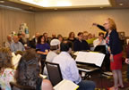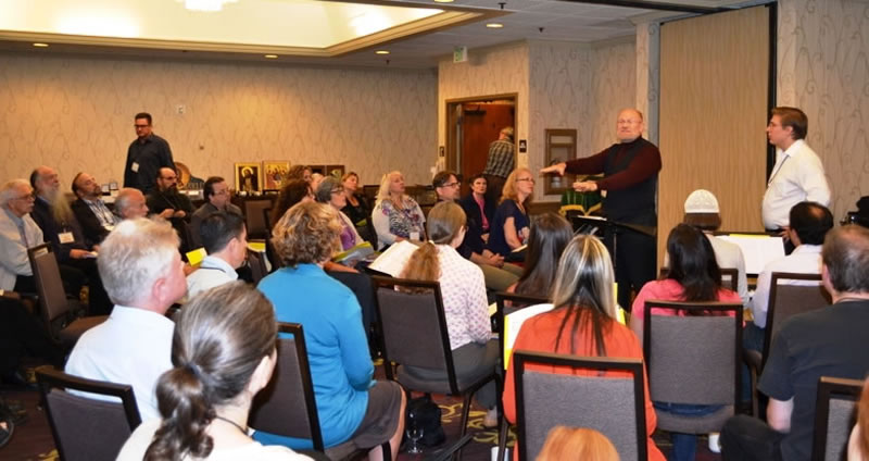 Профессор Ирина Шачнева, дирижер известного хора «Славянка» в районе Сан-Францисского залива, провела лекцию и рабочую сессию на тему «Улучшения хорового звука путем высокой техники на репетициях». Участники заразились ее горячей любовью к хоровой музыке, почувствовав важность беспрекословного подчинения желаниям и указаниям дирижера, постоянно прислушиваясь к соседним голосам, добиваясь таким образом качественного хорового звучания – ансамбля;