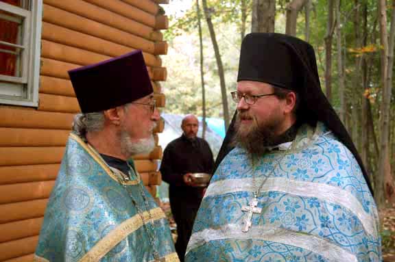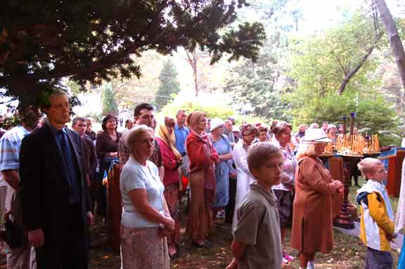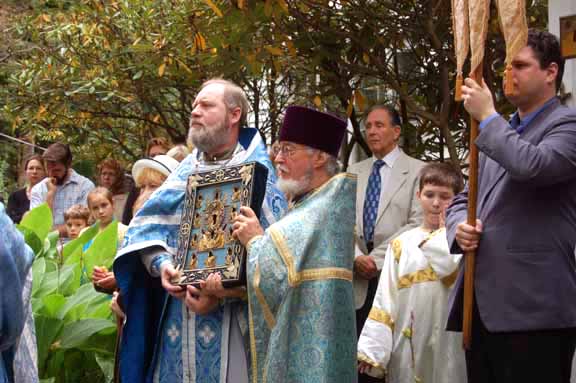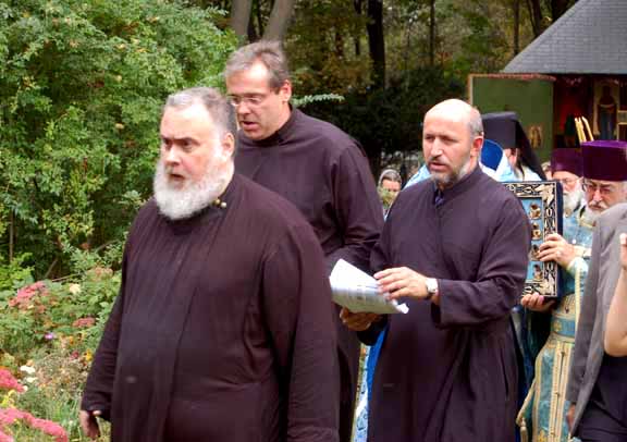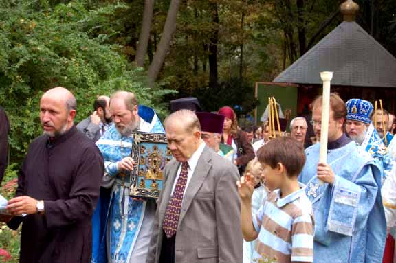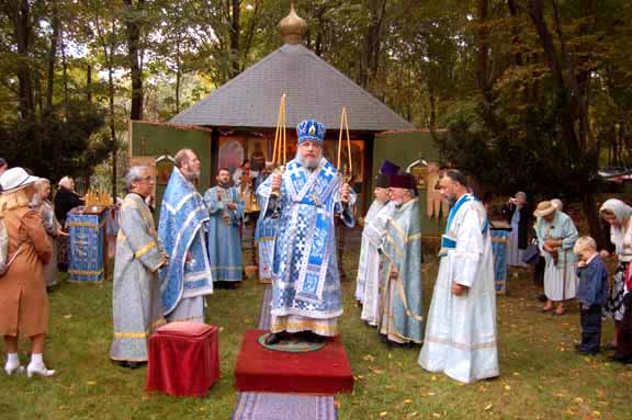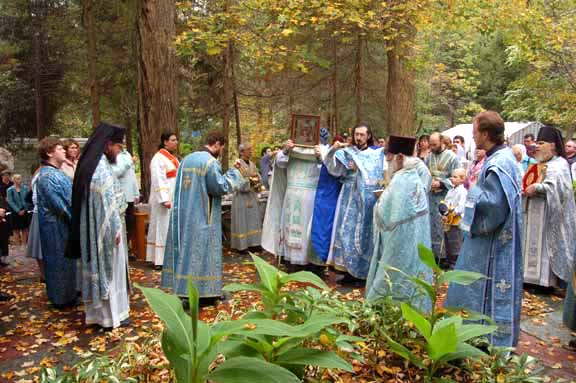 Sunday, September 24, was the feast day of the Kursk-Root Hermitage, celebrated on the Nativity of the Mother of God. Officiating at the open-air services at the chapel was Vicar Bishop of the Diocese of Eastern America and New York, His Grace Bishop Gabriel of Manhattan, who, to the great joy of the worshipers, brought the Kursk-Root Icon of the Mother of God "of the Sign." His Grace was joined by Protopriest Wsewolod Dutikow; Protopriest Alexander Donchenko; Priest Ilya Gun; Priest Alexander Botschagow; Priest Vadim Arefiev; Hieromonk Tikhon; and Hieromonk Evtikhii; along with Deacon Vladimir Tsurikov and Deacon Vladimir Oliynik.