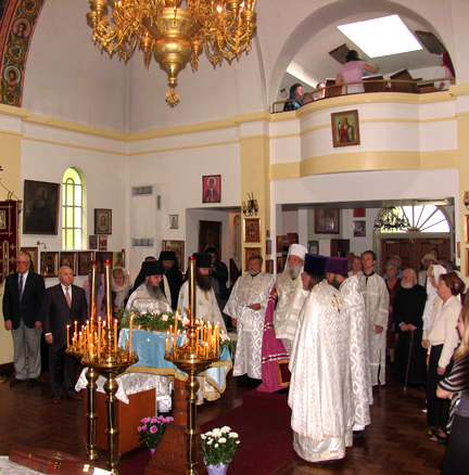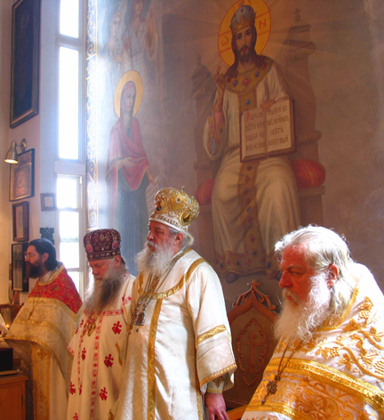 The following day, His Eminence Vladyka officiated at Divine Liturgy in the Cathedral of the Mother of God "Joy of All Who Sorrow" in San Francisco, and all-night vigil on the eve, joined by Archbishop Kyrill of San Francisco and Western America and Bishop Peter of Cleveland, the Cathedral's clergymen and visiting clergy. That evening, at the service on the eve of the Translation of the Relics of St Nicholas to Bari, His Eminence officiated at all-night vigil at the Church of All Russian Saints in Burlingame, CA. The next day, His Eminence Vladyka served at Divine Liturgy here along with Bishop Peter, Parish Rector Protopriest Stefan Pavlenko, Protopriest Peter Perekrestov and local clergymen. Noteworthy is the fact that this church was at one time the podvorie [local residence] of Blessed Metropolitan Anastassy, who died on this holiday 41 years ago.