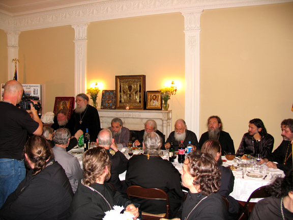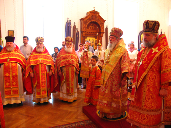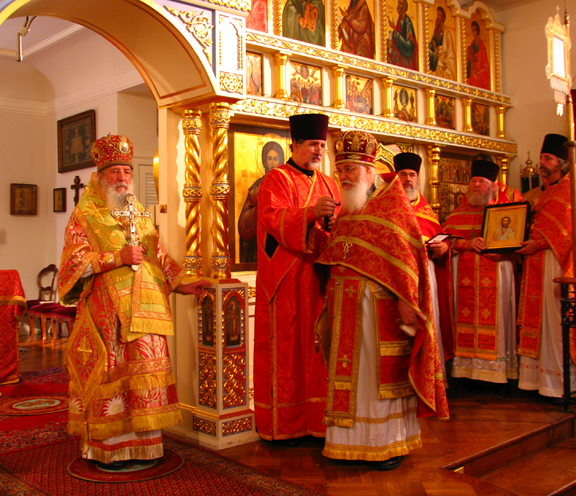 On the Nativity of St John the Forerunner and the anniversary of the episcopal consecration of his Vicar Bishop, His Eminence Metropolitan Laurus officiated at Divine Liturgy at the Cathedral of Our Lady of the Sign at the Synod of Bishops in New York, along with His Grace Bishop Gabriel of Manhattan and 33 other clergymen. At the end of Divine Liturgy and a moleben, His Eminence congratulated Bishop Gabriel on his tenth anniversary as bishop and wished His Grace God's help in the bearing of his archpastoral cross. A reception was then held, at which many warm greetings were read and gifts presented to His Grace. Below are photographs of the event.