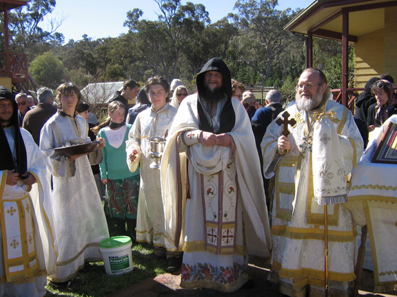 Here, on August 18-19, the Ruling Bishop of Sydney, Australia and New Zealand officiated at the feast-day celebrations of the monastery. During all-night vigil, male choirs under the direction of Archimandrite Alexis and Hieromonk Sergei sang, which included singers from Sydney and Geelong. A litiya was performed along with a procession of the cross and the corresponding supplications around the church; the night was festive—the stars shone and nature rejoiced.