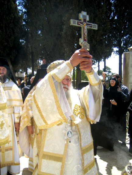 Metropolitan Laurus Officiates at Divine Liturgy on the 100 th Anniversary of the Ascension Convent on the Mount of Olives On August 29, the Translation of the Image of Christ "Not Made by Hands," called the "Third Savior Icon" by many Russians, His Eminence Metropolitan Laurus officiated at the celebrations of the 100 th anniversary of Ascension Convent on the Mount of Olives, Jerusalem. The celebrations began with Divine Liturgy, conducted by Metropolitan Laurus along with His Eminence Archbishop Mark of Berlin and Germany; Hegumen Andronik (Kotliaroff); Priest Serafim Gan; Hieromonk Savva; Hieromonk Nicholas (Perekrestov); Hieromonk John; Priest Peter Sturm; Protodeacon Victor Lochmatov; Deacon Nicholas Olhovsky and Hierodeacon Cyprian (Alexandrou). His Holiness Patriarch Theophilos of Jerusalem and All Palestine arrived for the end of Liturgy along with the members of the Synod of Bishops of the Jerusalem Patriarchate and the Brotherhood of the Holy Sepulchre, who conduct their monastic labors at the Life-bearing Tomb of Christ. His Holiness was greeted by the clergymen as the Convent choir, under the direction of Nun Vassa (Larin), sang "Ton despotin."