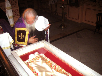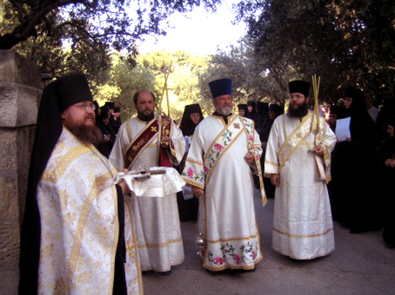 Bidding farewell to Archimandrite Hilarion, His Eminence then departed for Jerusalem, to the Convent of St Mary Magdalene in Gethsemane, where he prayed in the altar during all-night vigil.