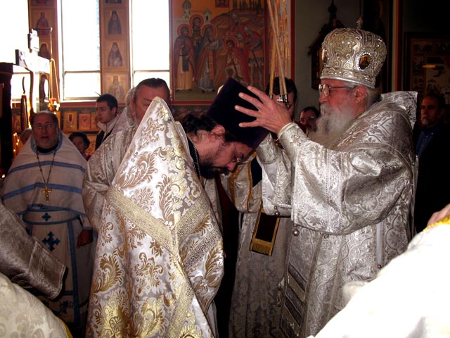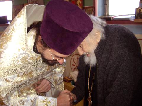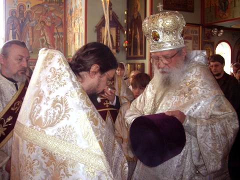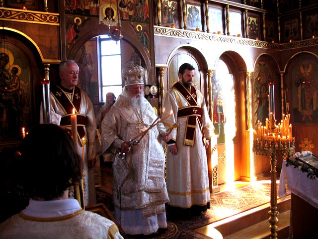 His Eminence Vladyka then elevated Fr Nicholas to the rank of protopriest on this, his twentieth year of service in the priesthood in the Holy Church of Christ. At the end of service, the Primate of the part of the Russian Orthodox Church abroad then expressed his thanks to Fr Roman for his many years of labor in providing pastoral nourishment and insuring the well-being of the life of Epiphany Church, and invoked God's blessing upon him, the new Rector, the clergymen, all the parishioners and worshipers. Fr Roman, although he has been released from his duties in connection with his health, will remain at the parish in an auxiliary capacity.