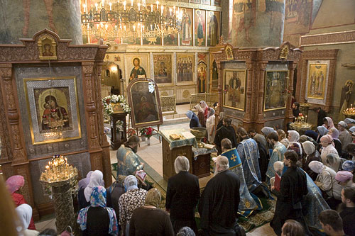 Photo: Michael Rodionov / Pravoslavie.ruThe Icon was brought to Sretensky Stavropighial Monastery the night before. The miracle-working icon arrived at the monastery on August 29, not long before all-night vigil. As the bells pealed, the monastic brethren and parishioners of the monastery church solemnly greeted it. After matins, an akathist was performed before the icon, after which over two hundred worshipers venerated the holy image.