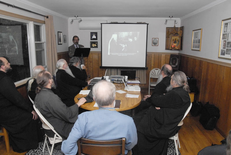Representing the Russian Church Abroad are the Committee Chairman, His Grace Bishop George of Mayfield, Vicar of the Eastern American Diocese; Archimandrite Luke (Murianka); Committee Secretary Protopriest Alexander Lebedeff; Protopriest David Moser and Priest Peter Jackson. Protopriest Serafim Gan is participating as a consultant.