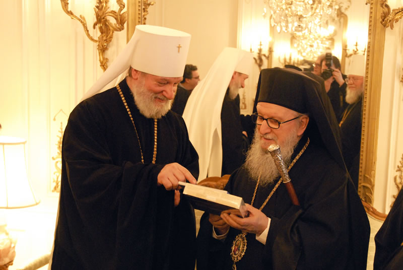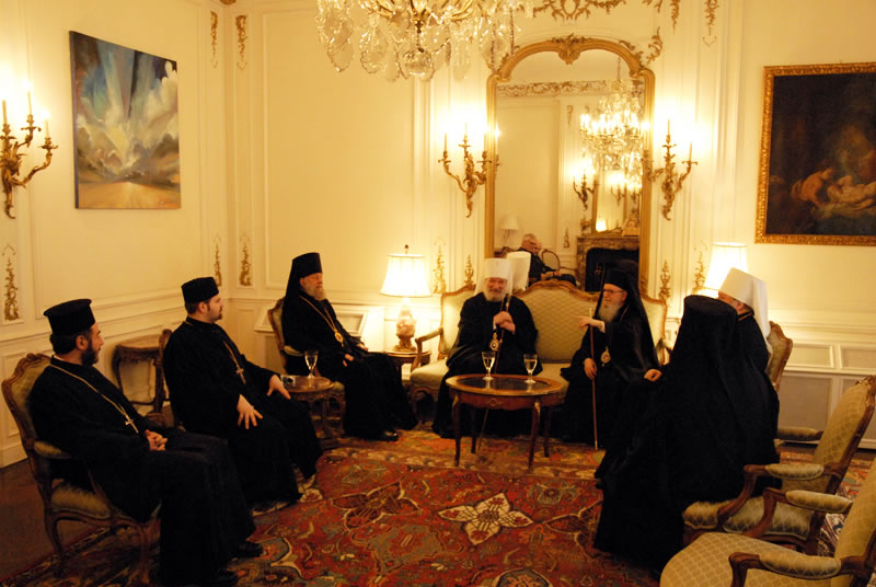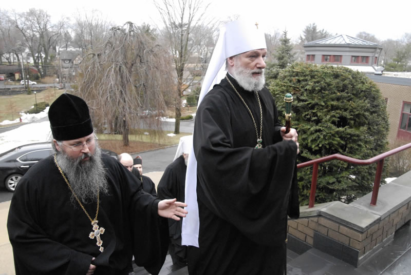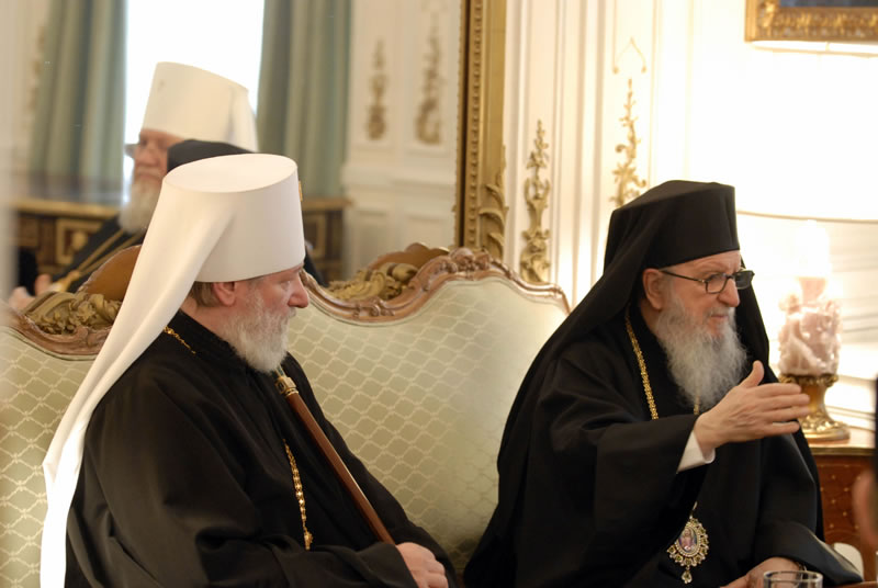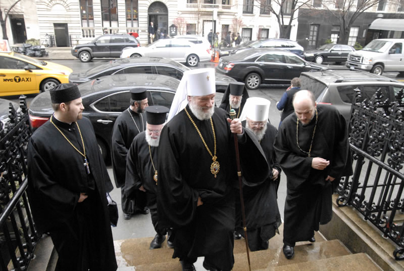 On February 28, 2011, after praying at Divine Liturgy at the Synodal Cathedral of Our Lady “of the Sign” at the residence of His Eminence Metropolitan Hilarion, First Hierarch of the Russian Orthodox Church Outside of Russia, His Beatitude Metropolitan Christopher of the Czech Lands and Slovakia visited the New York headquarters of the Greek Orthodox Archdiocese of America. There he met with His Eminence Archbishop Demetrios.