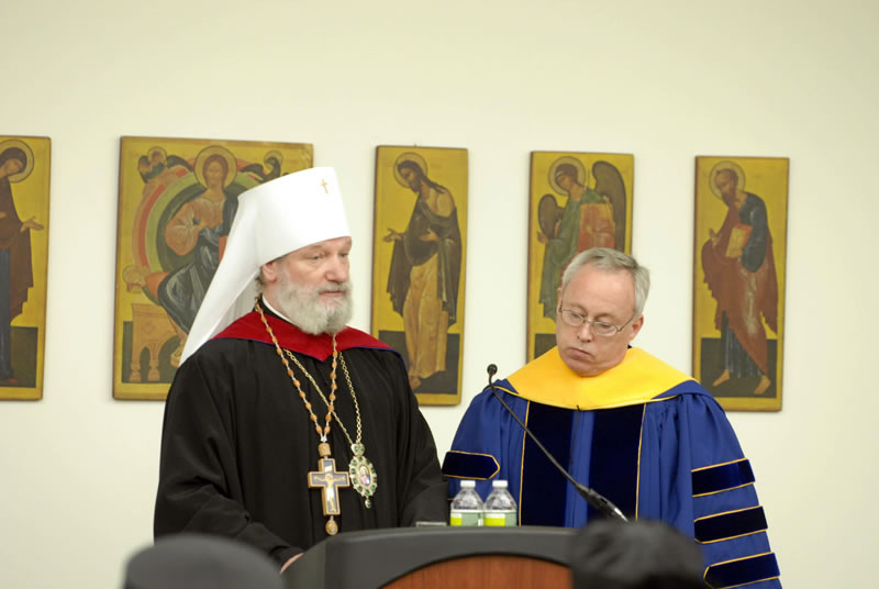 His Beatitude then visited St Vladimir Orthodox Theological Seminary of the Orthodox Church in America, where he was given an Honorary Doctorate in Theology. After the ceremony, His Beatitude Metropolitan Jonah, the Primate of the COA, gave Metropolitan Christopher the Order of St Innocent.