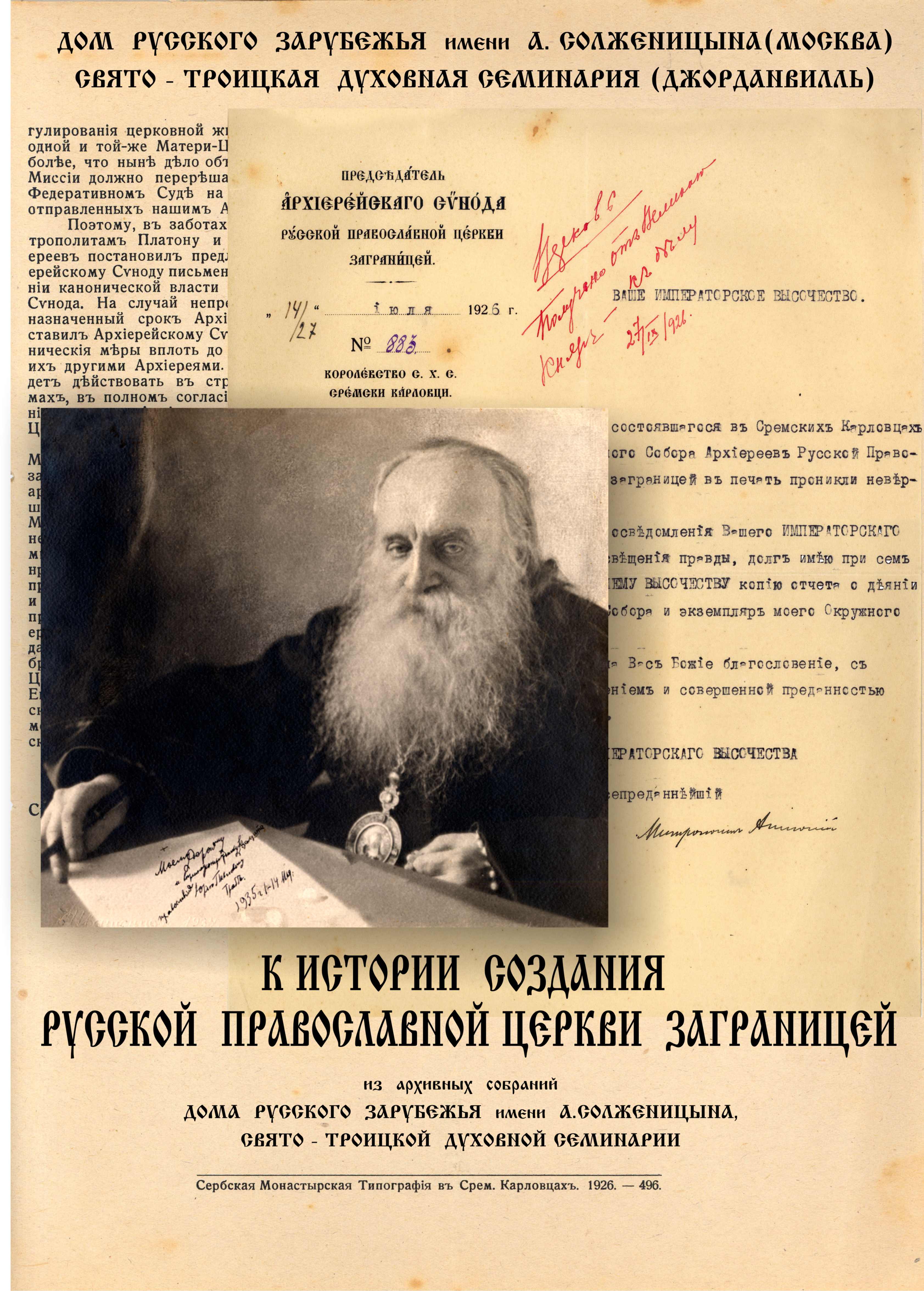 This exposition will include rare documents and photographic materials from the Alexander Solzhenitsyn House of the Russian Diaspora in Moscow and the archives of Holy Trinity Monastery in Jordanville, NY, photos and correspondence of Metropolitan Anthony, his telegrams to Grand Duke Nikolai Nikolaevich, autographs of Metropolitan Anastassy, epistles of the Synod of Bishops, photos of the Russian diaspora in Serbia, and also photos showing the life of Holy Trinity Monastery.
