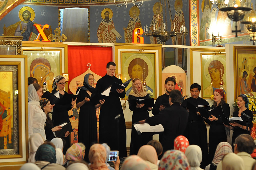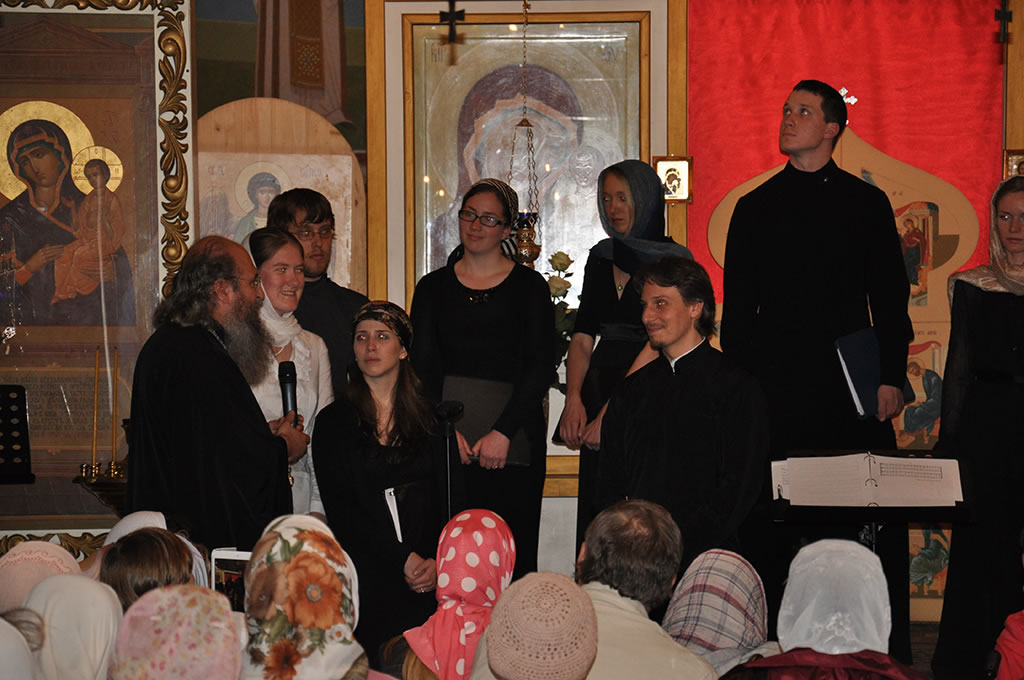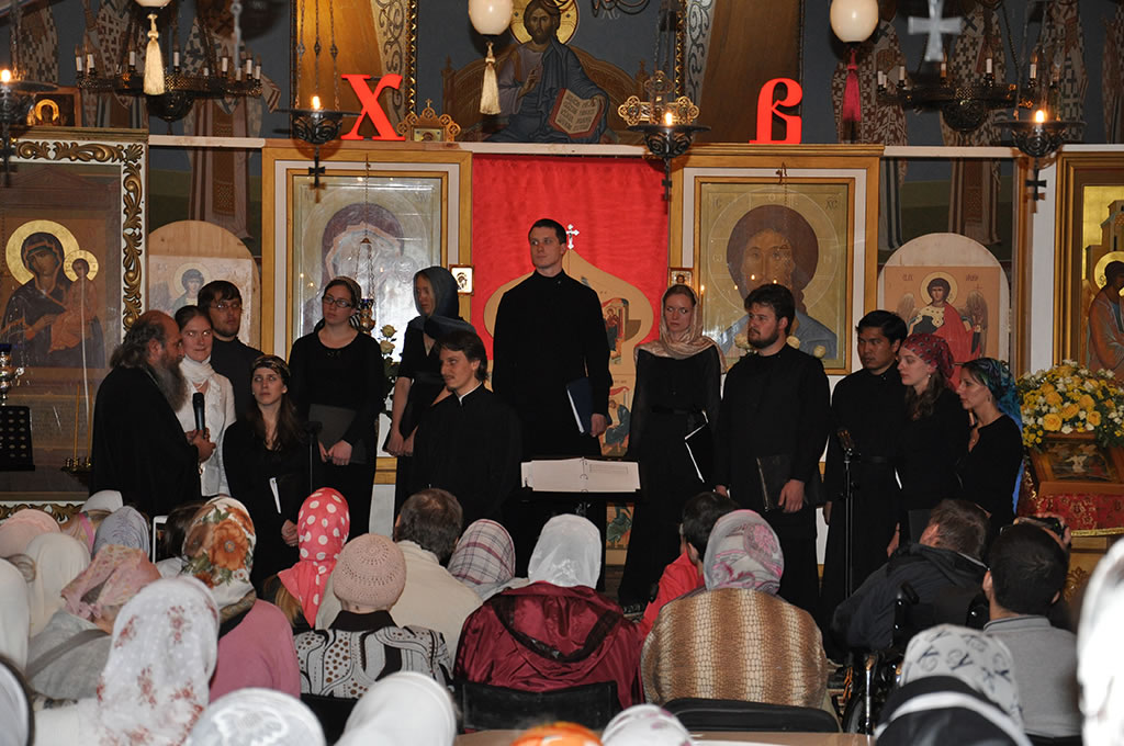 On Sunday, May 26, 2013, after evening divine services in the Church of the Protection of the Mother of God, a combined youth choir of singers of the Russian Orthodox Church Outside of Russia, led by seminarian Nicholas Kotar of Holy Trinity Seminary in Jordanville, NY, gave a performance.