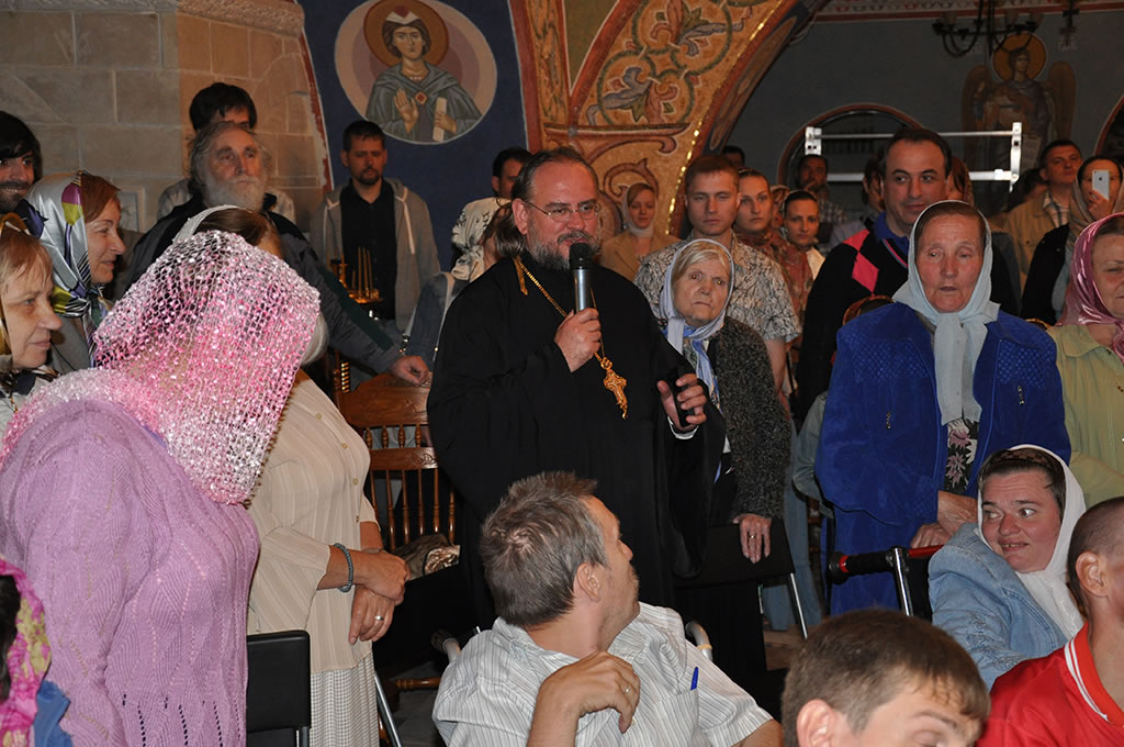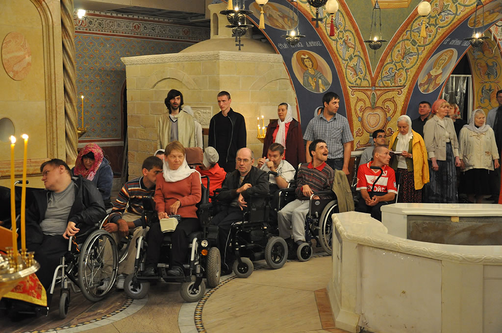 Parishioners of Protection Church and the Church of SS Peter and Paul in Yasenevo were in attendance, as well as a number of handicapped people living in Veteran’s Home No. 6, who were transported by an Orthodox youth brotherhood known as Pokrov [“protection”].