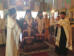 Bishop Theodosius then read a sermon. Fr Leonid welcomed the archpastors on behalf of his parishioners, thanking them for their prayerful support and words of guidance. Protopriest Georgy and Hegumen Nikodim then thanked the hierarchs on behalf of Archbishop Justinian.