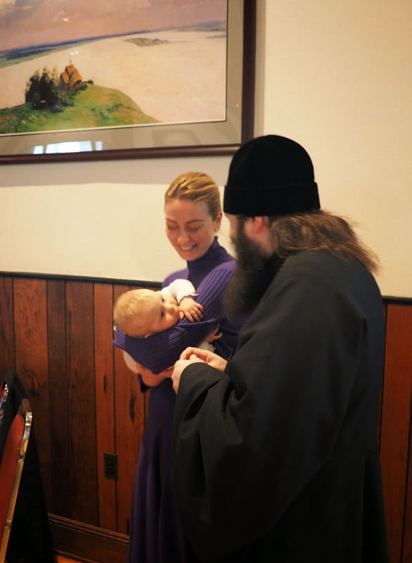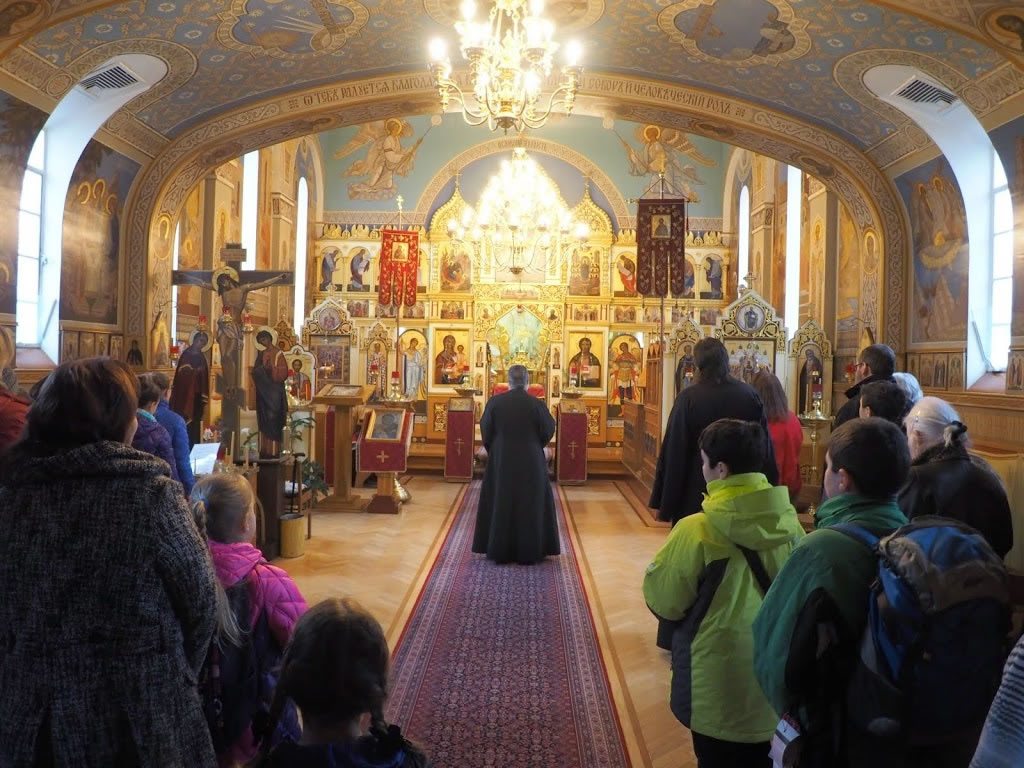Protodeacon Serge Arlievsky, Curriculum Director and teacher of the Law of God, gave Bishop Nicholas a tour of the school. His Grace then had a discussion with the elder students, telling them about living an Orthodox life, explaining what it means to be an Orthodox Christian in the modern world, calling upon the young people to stay loyal to the Church. Vladyka Nicholas then attended a singing lesson with the middle-level students under the experienced guidance of Irina Serdseva.